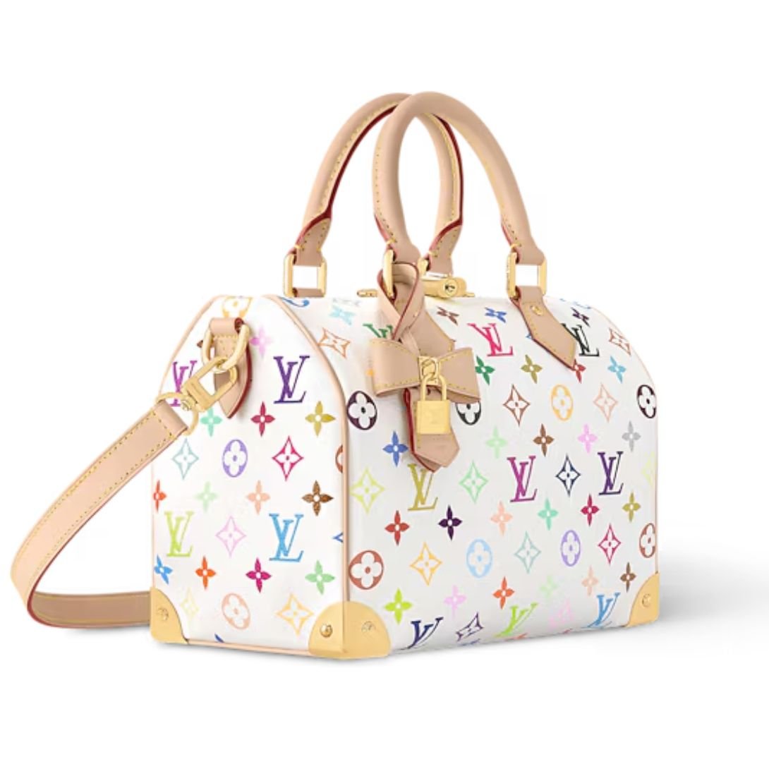 The Speedy Bandoulière 25 makes a bold, artistic statement in the Louis Vuitton x Murakami collection. Infused with Takashi Murakami’s signature pop-art palette, the classic Monogram canvas comes alive in a vibrant, multicolored motif that’s both iconic and refreshingly contemporary.
