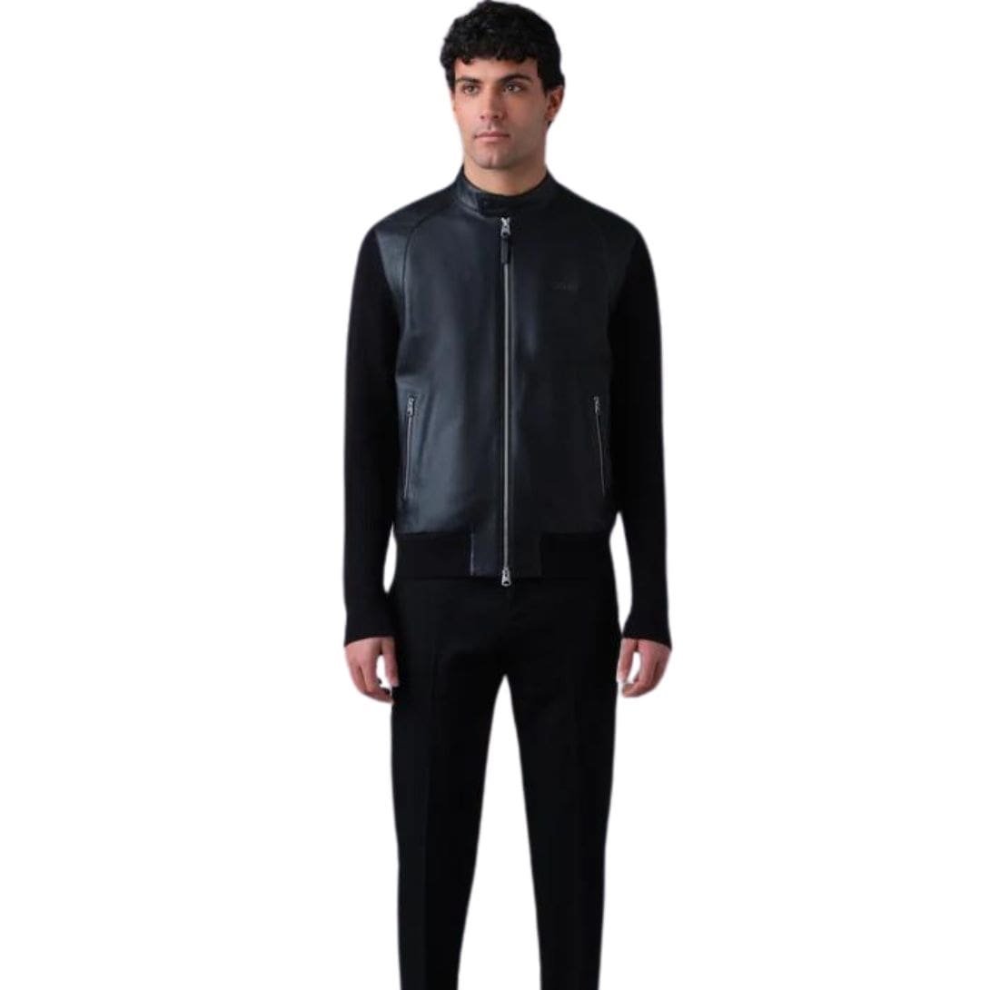 - Leather and knit wool mixed-media jacket