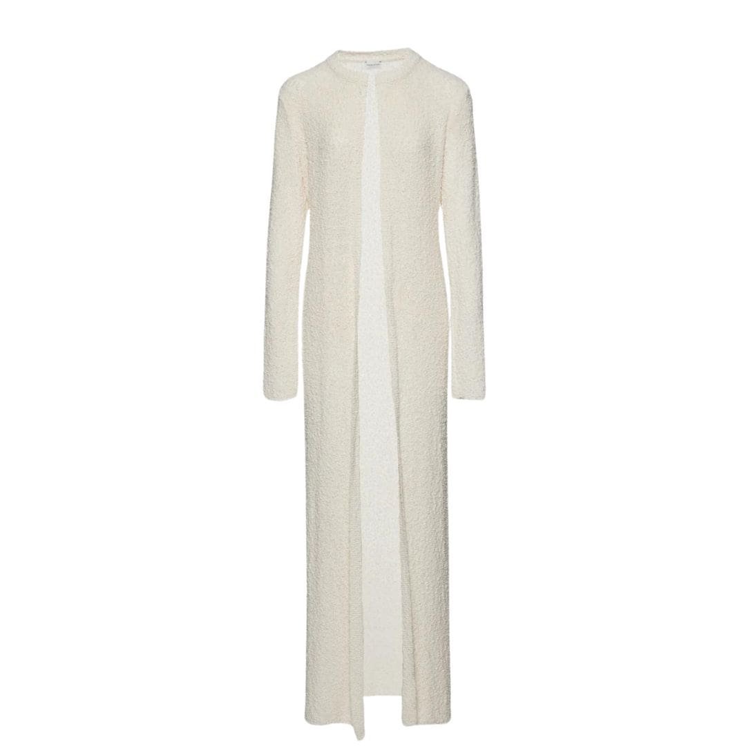 Crafted from cotton bouclé knitwear, the dress ensures comfort without compromising on style. The lightweight nature of the fabric allows for ease of movement, making it a practical yet chic choice for all-day wear. Cotton’s natural breathability also ensures comfort in different climates, making the dress suitable for year-round wear.