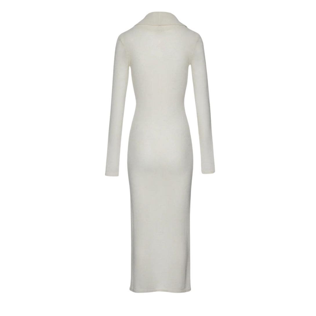 The cream color of the dress lends a timeless quality, allowing it to be effortlessly styled with accessories and footwear. Whether paired with heels for a polished look or layered with a jacket for added warmth, this dress promises to elevate any ensemble with its understated sophistication.