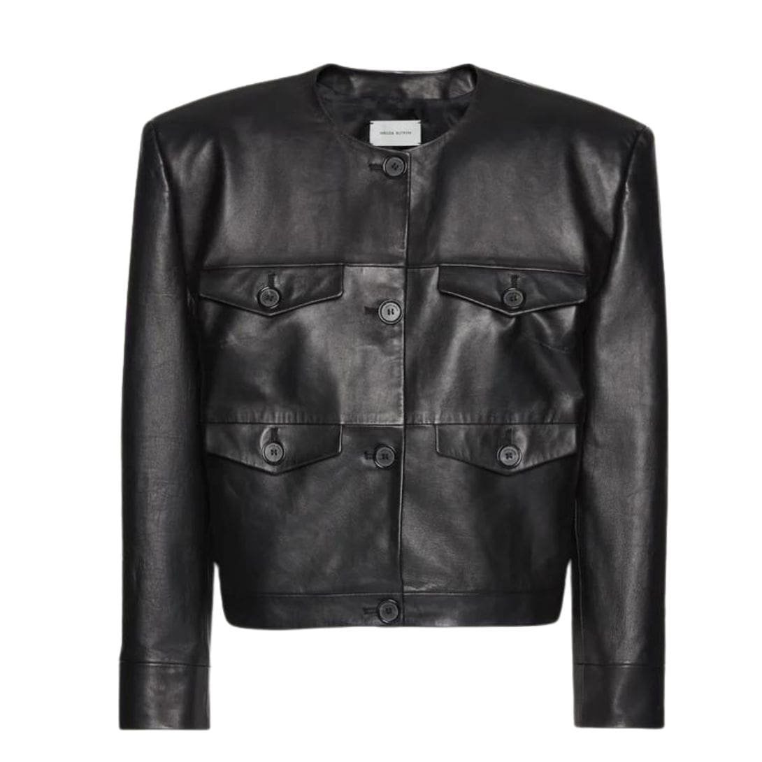 From its impeccable construction to its thoughtful design details, every aspect of this leather jacket reflects Magda Butrym’s commitment to quality and innovation. Whether paired with tailored trousers for a sophisticated office ensemble or draped over a flowing dress for a touch of edge, this jacket effortlessly elevates any look with its unparalleled elegance and style.