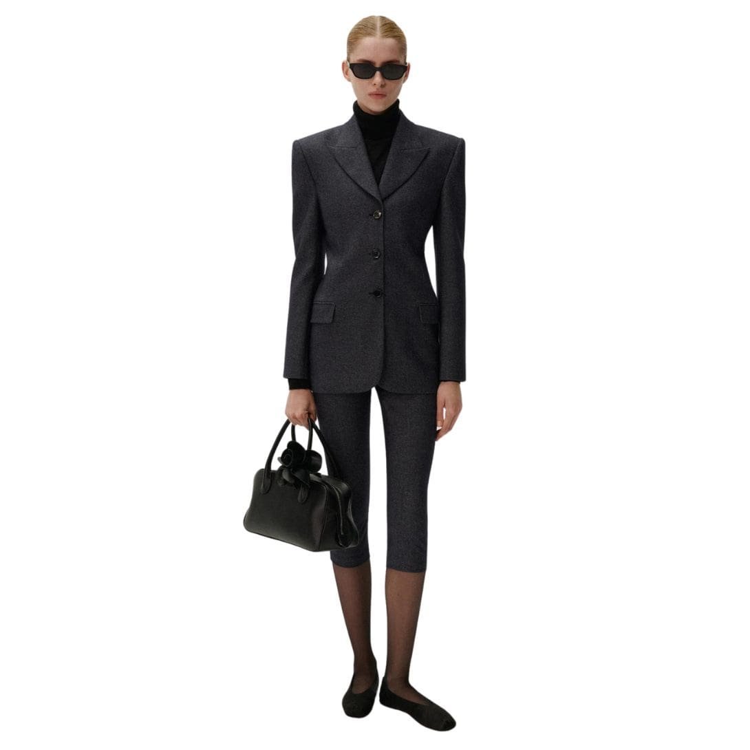 Whether you’re dressing for a business meeting or a night out on the town, Magda Butrym’s Capri slim wool pants in navy are the epitome of refined sophistication. Elevate your wardrobe with these impeccably tailored pants and make a statement with every wear. With their flattering silhouette, versatile length, and luxurious craftsmanship, these pants are sure to become a staple piece that transcends seasonal trends and exudes timeless elegance.