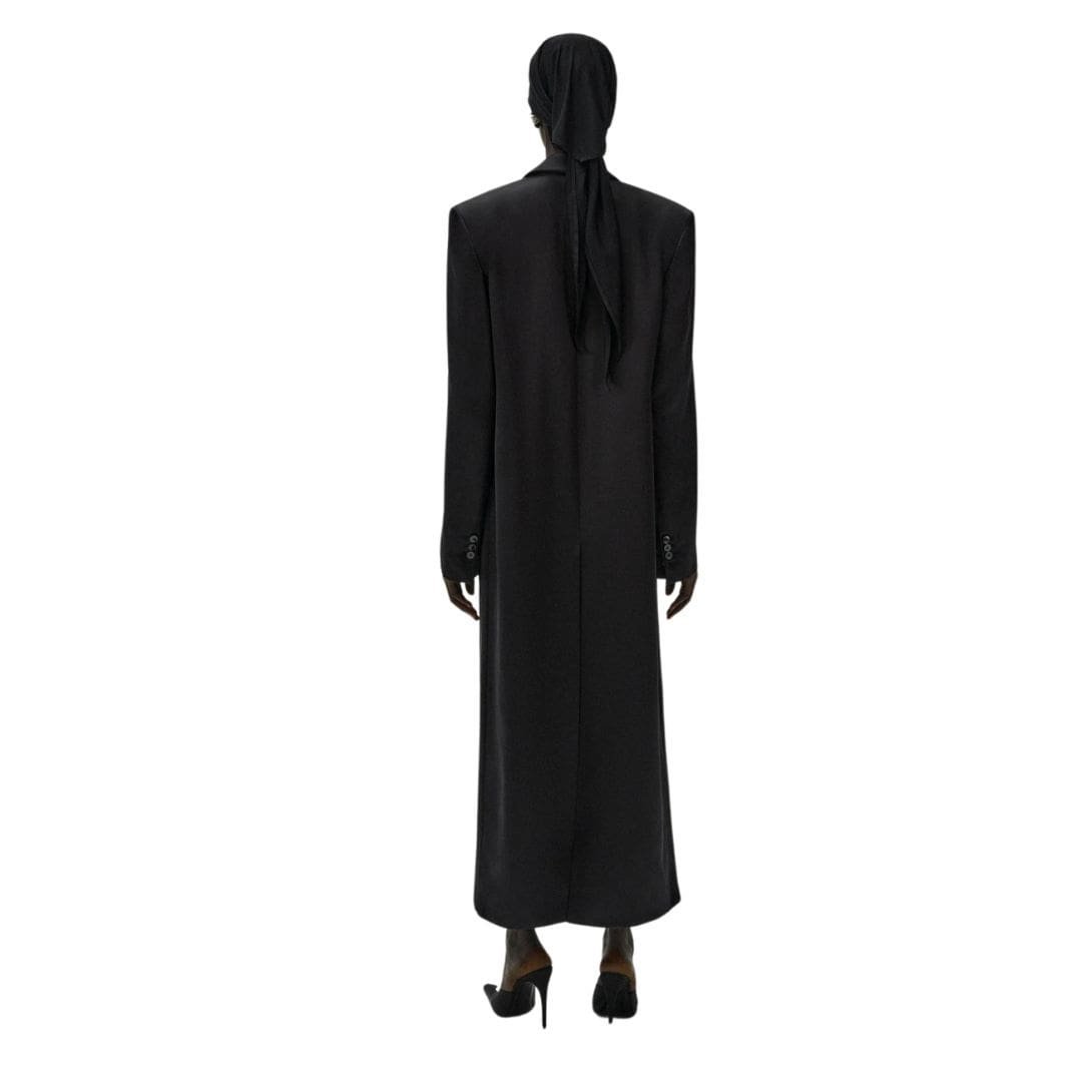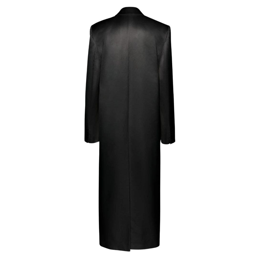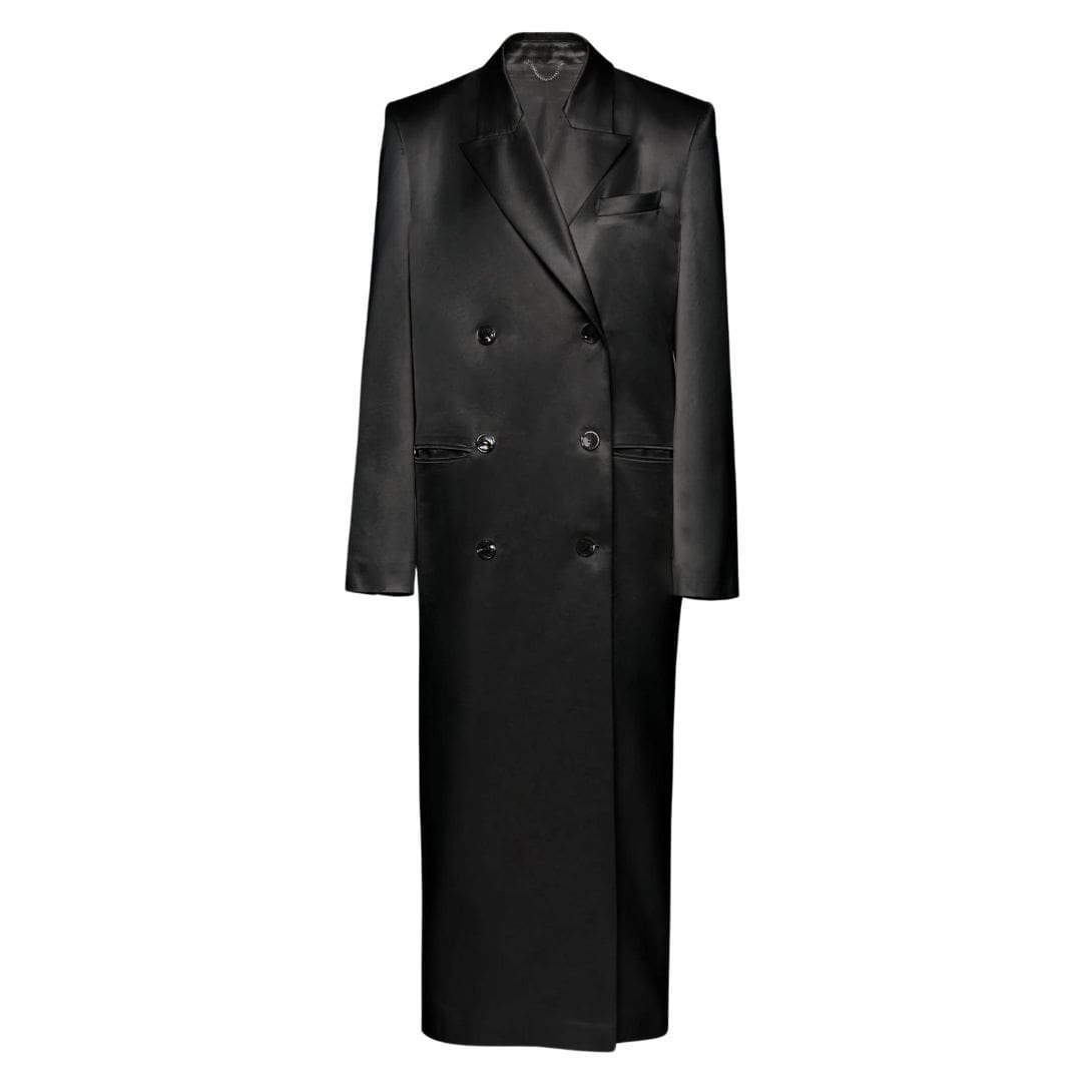 Magda Butrym presents a refreshing take on the MAGDA BUTRYM CLASSIC DOUBLE BREASTED SILK COAT IN BLACK with this lightweight rendition crafted from luxurious silk, perfect for the spring season. Embracing the brand’s signature silhouette, this coat embodies timeless elegance with its impeccable design and attention to detail.