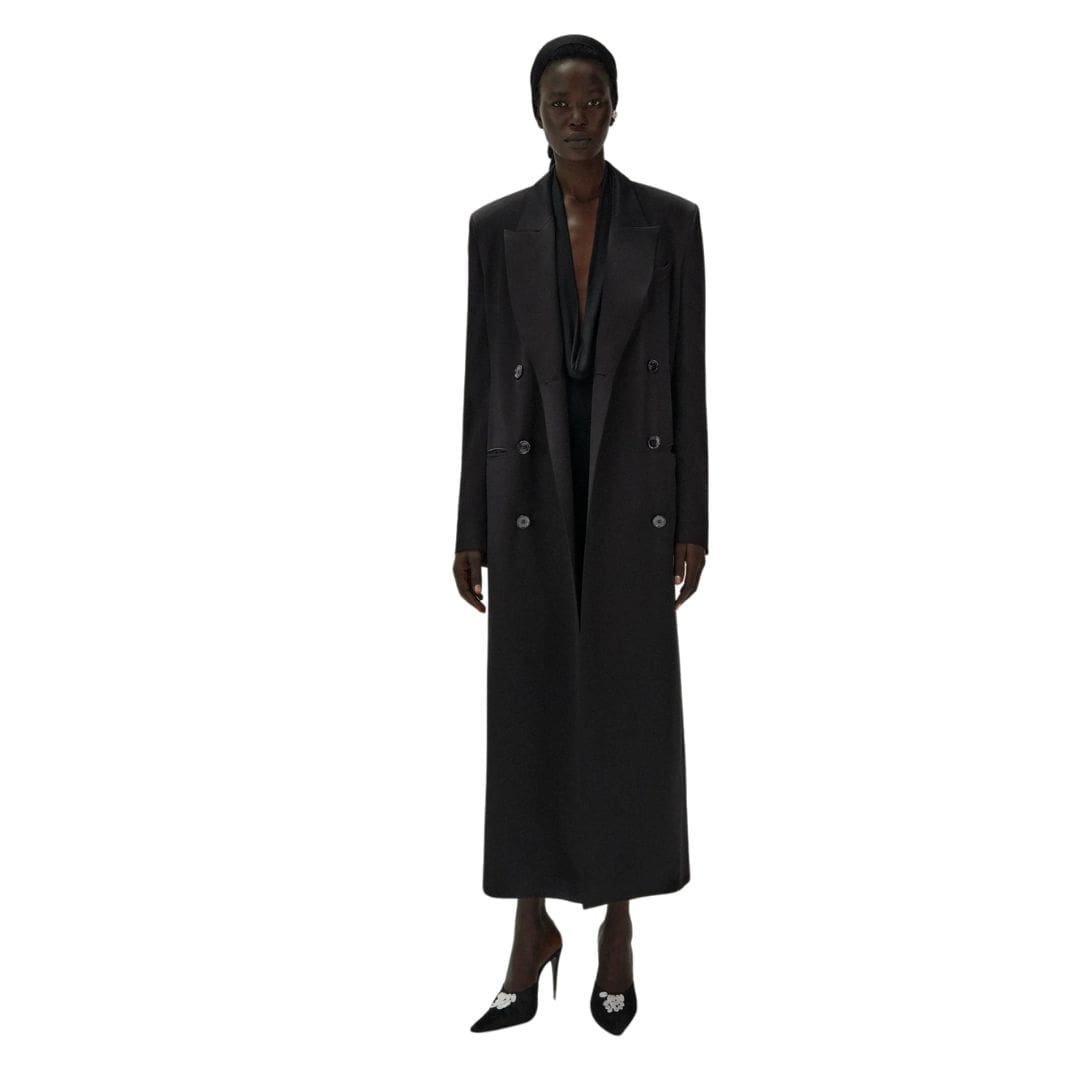 MAGDA BUTRYM CLASSIC DOUBLE BREASTED SILK COAT IN BLACK