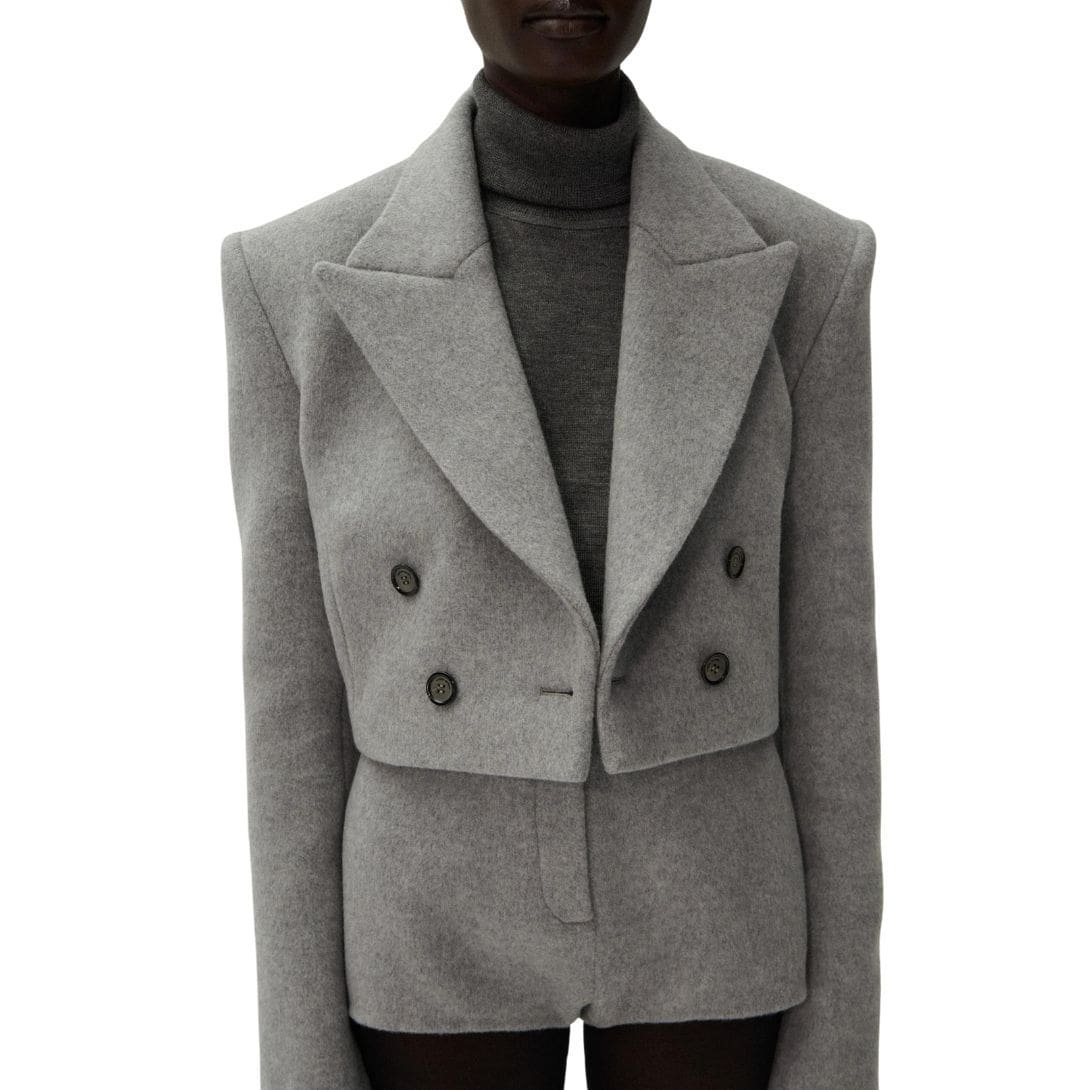 MAGDA BUTRYM CROPPED DOUBLE BREASTED BLAZER IN GREY