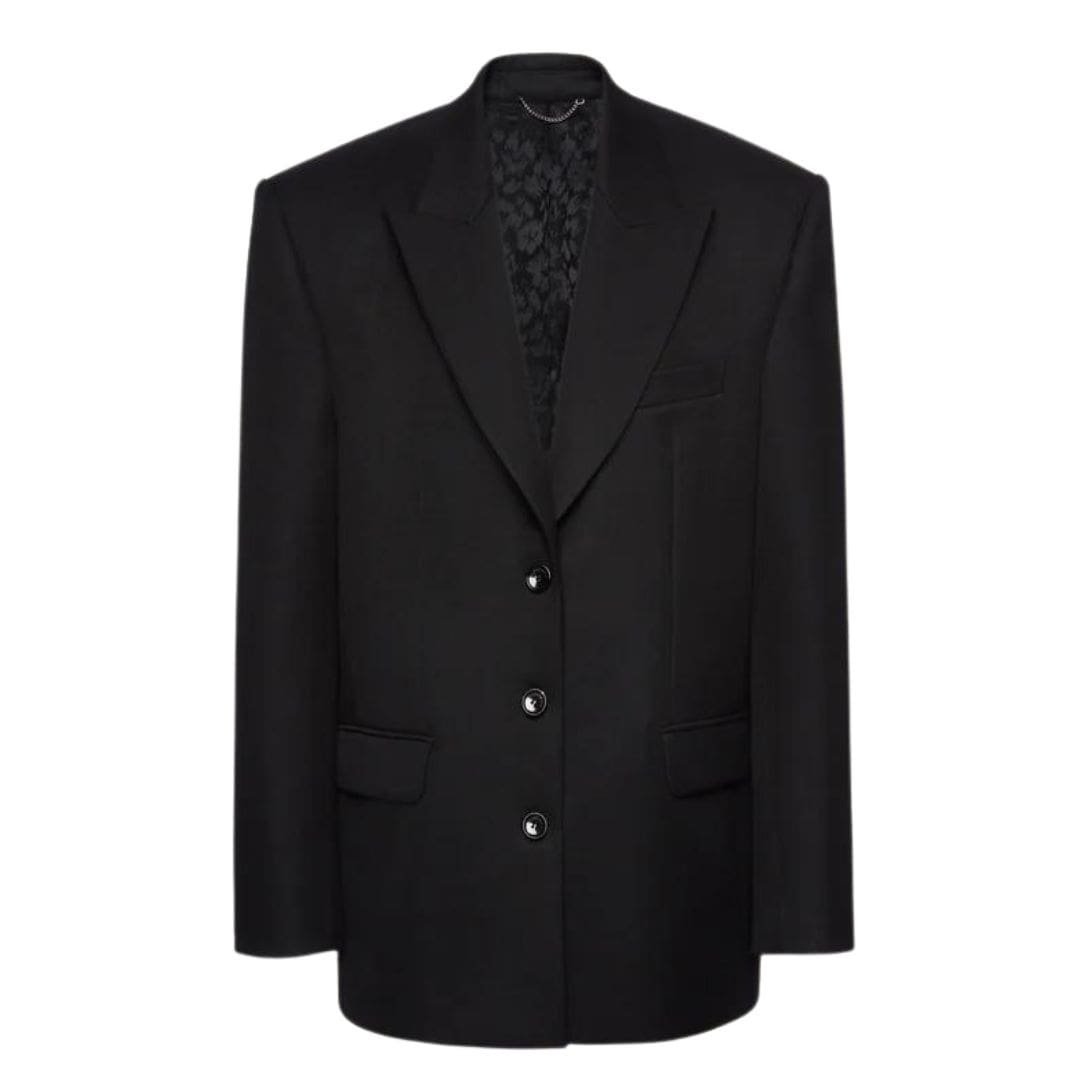 Sharp shoulders further elevate the blazer’s smart aesthetic, adding structure and definition to the silhouette. The clean lines and tailored fit ensure a polished and refined look, making it ideal for both professional settings and special occasions. Whether worn as part of a sophisticated office ensemble or layered over a cocktail dress for a night out, this blazer exudes effortless elegance and refinement.