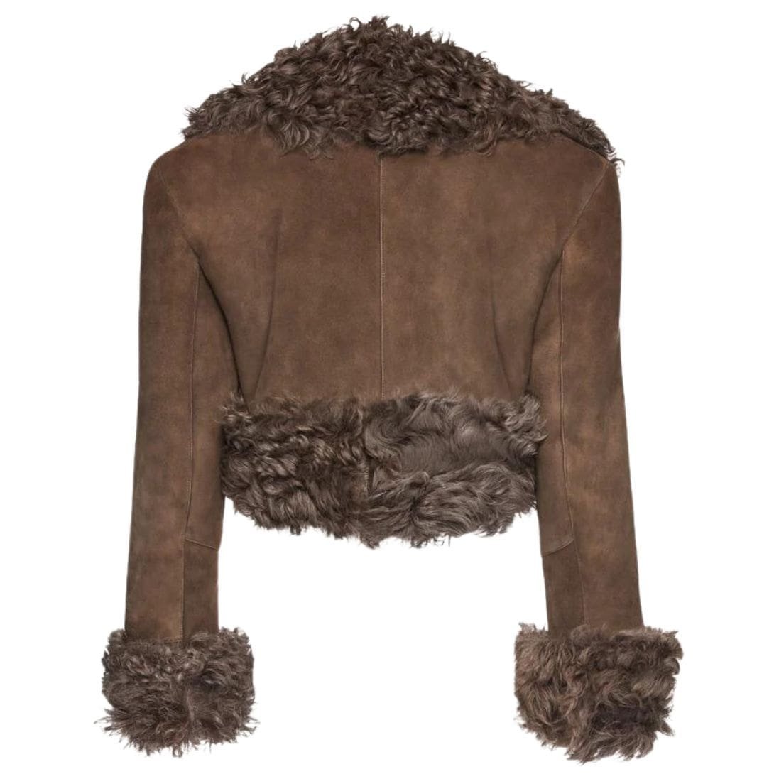 MAGDA BUTRYM CROPPED SUEDE SHEARLING COAT IN BROWN