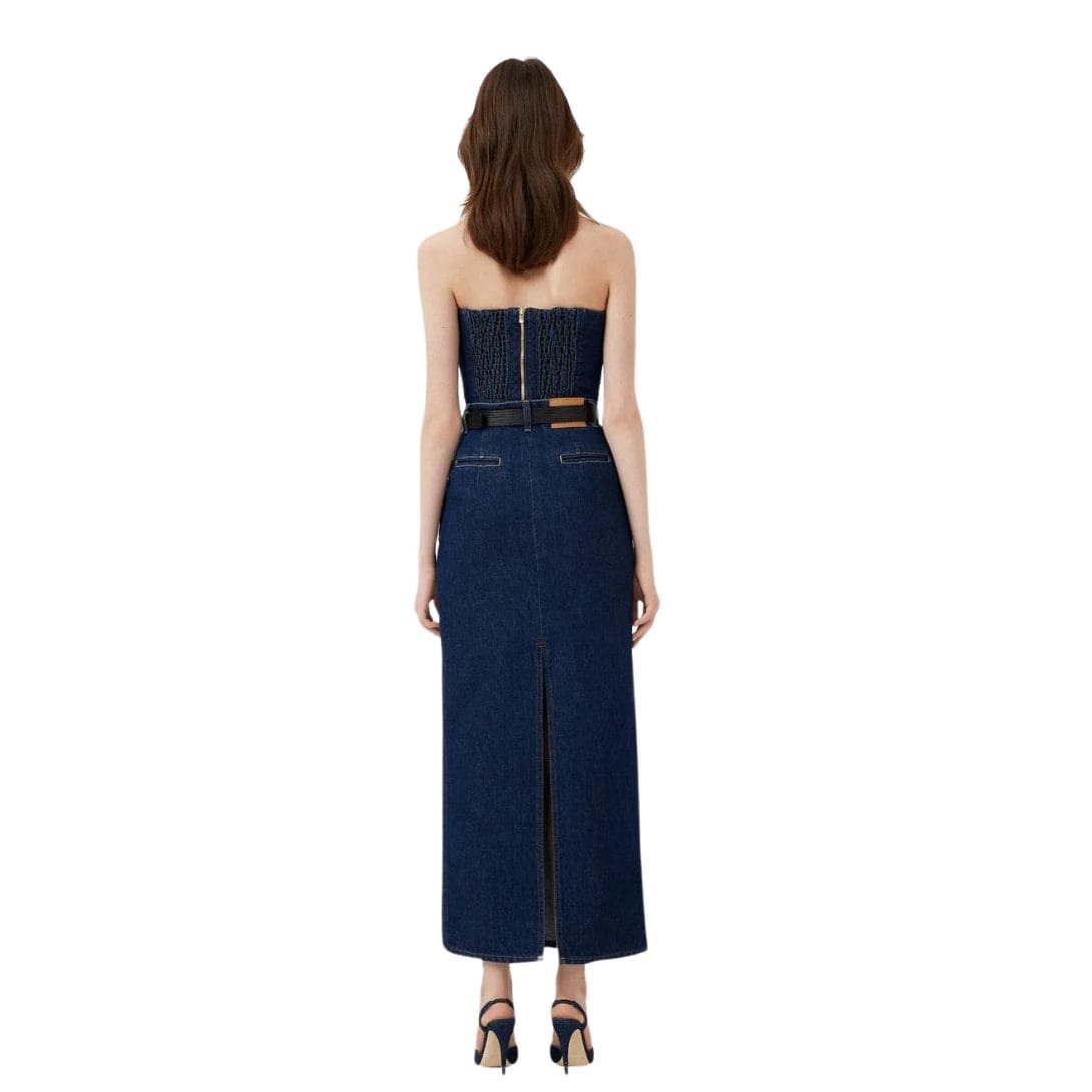 Magda Butrym’s denim corset top in indigo embodies her commitment to blending classic elegance with modern sensibility. It epitomizes casual chic with its denim construction and structured silhouette, making it a statement piece for both casual outings and more refined occasions.