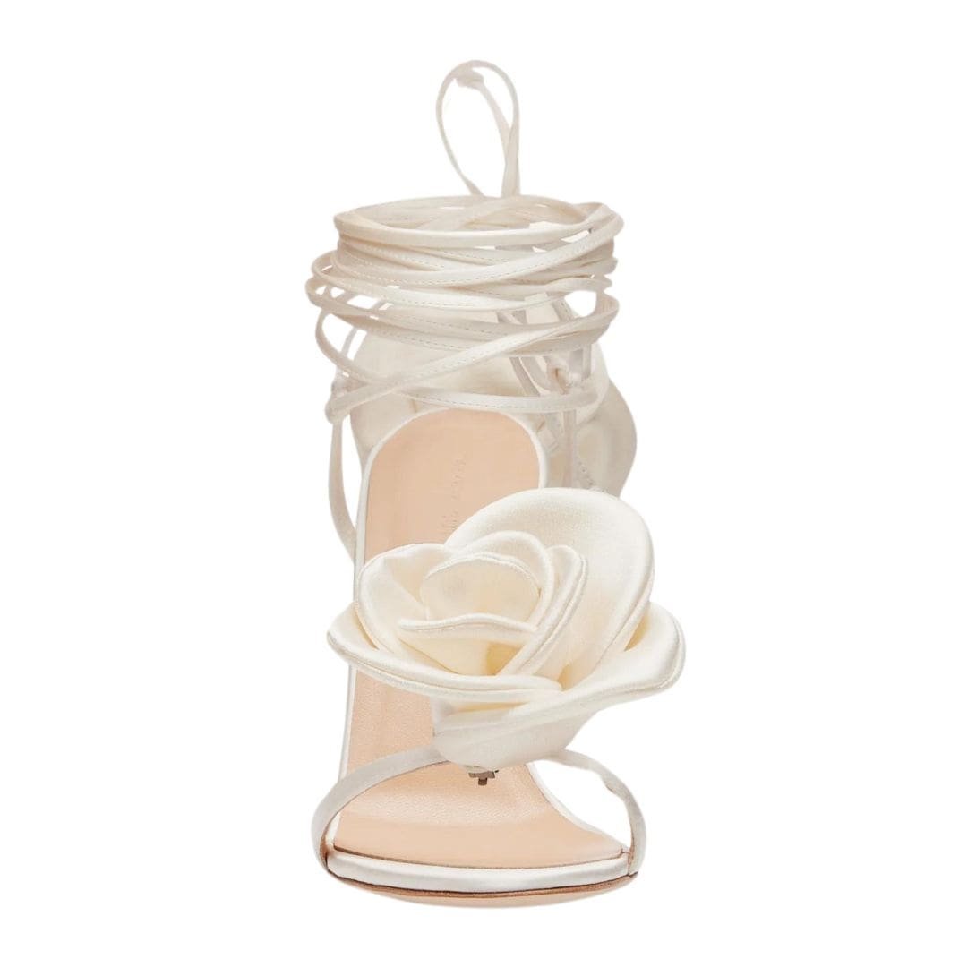 MAGDA BUTRYM DOUBLE FLOWER HEEL SANDALS IN IVORY