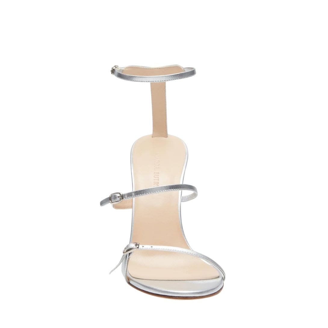 At first glance, the triple-strap silhouette captivates the eye, offering a modern twist on a classic style. Each strap, carefully constructed from luxurious metallic leather, wraps gracefully around the foot, creating a sense of refinement and allure. The slender straps not only enhance the aesthetic appeal of the sandals but also provide optimal support and comfort with every step.