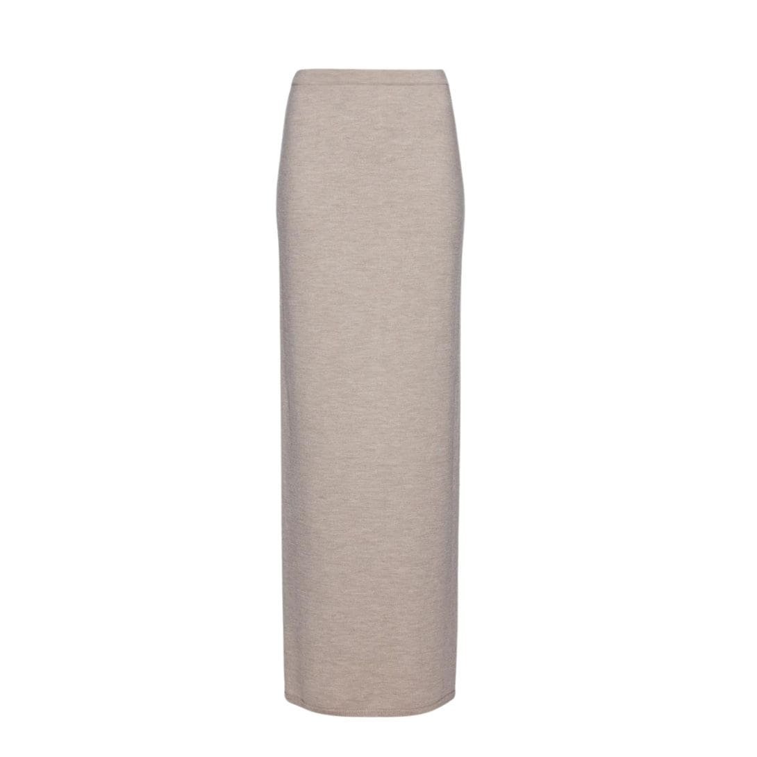 The beige color of the skirt adds to its versatility, allowing it to be easily paired with different tops and accessories. It serves as a neutral canvas that can complement various colors and patterns, making it a staple piece in any wardrobe.