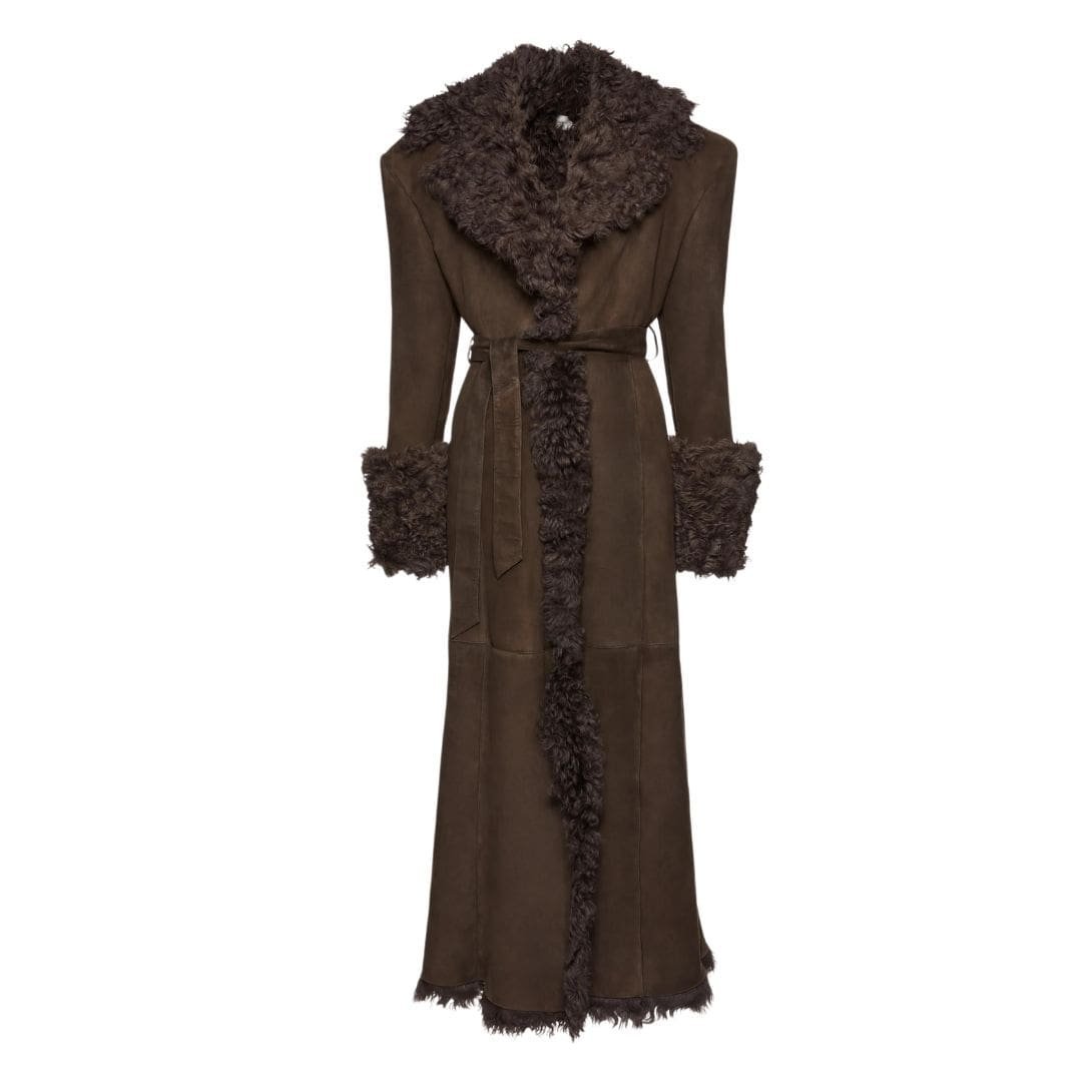 Embrace the sophistication of Magda Butrym’s long faux fur belted coat and elevate your outerwear collection with this timeless piece. With its classic design and luxurious materials, it is sure to make a chic statement wherever you go.