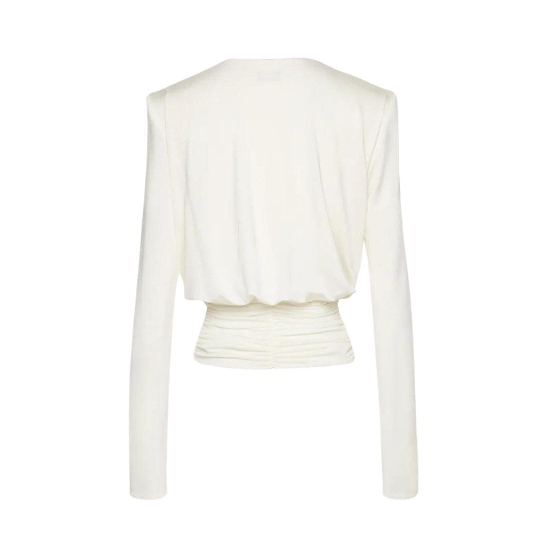 MAGDA BUTRYM LONG SLEEVE DRAPED JERSEY BLOUSE IN CREAM
