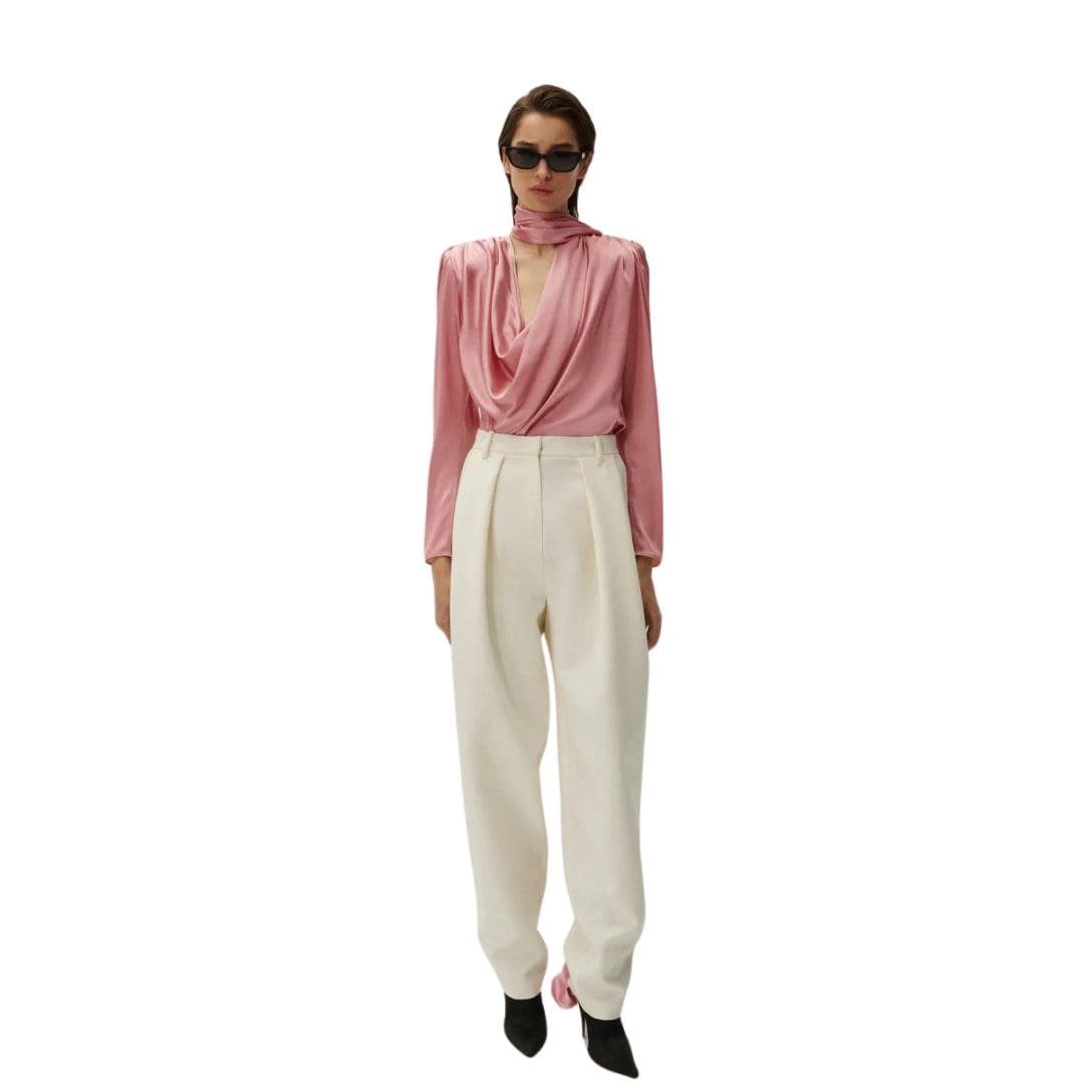 MAGDA BUTRYM LONG SLEEVE DRAPED SILK BLOUSE IN PINK