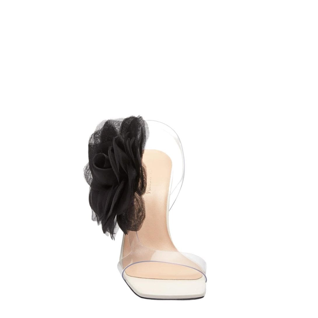 MAGDA BUTRYM ORGANZA FLOWER PVC SANDALS IN CREAM BLACK