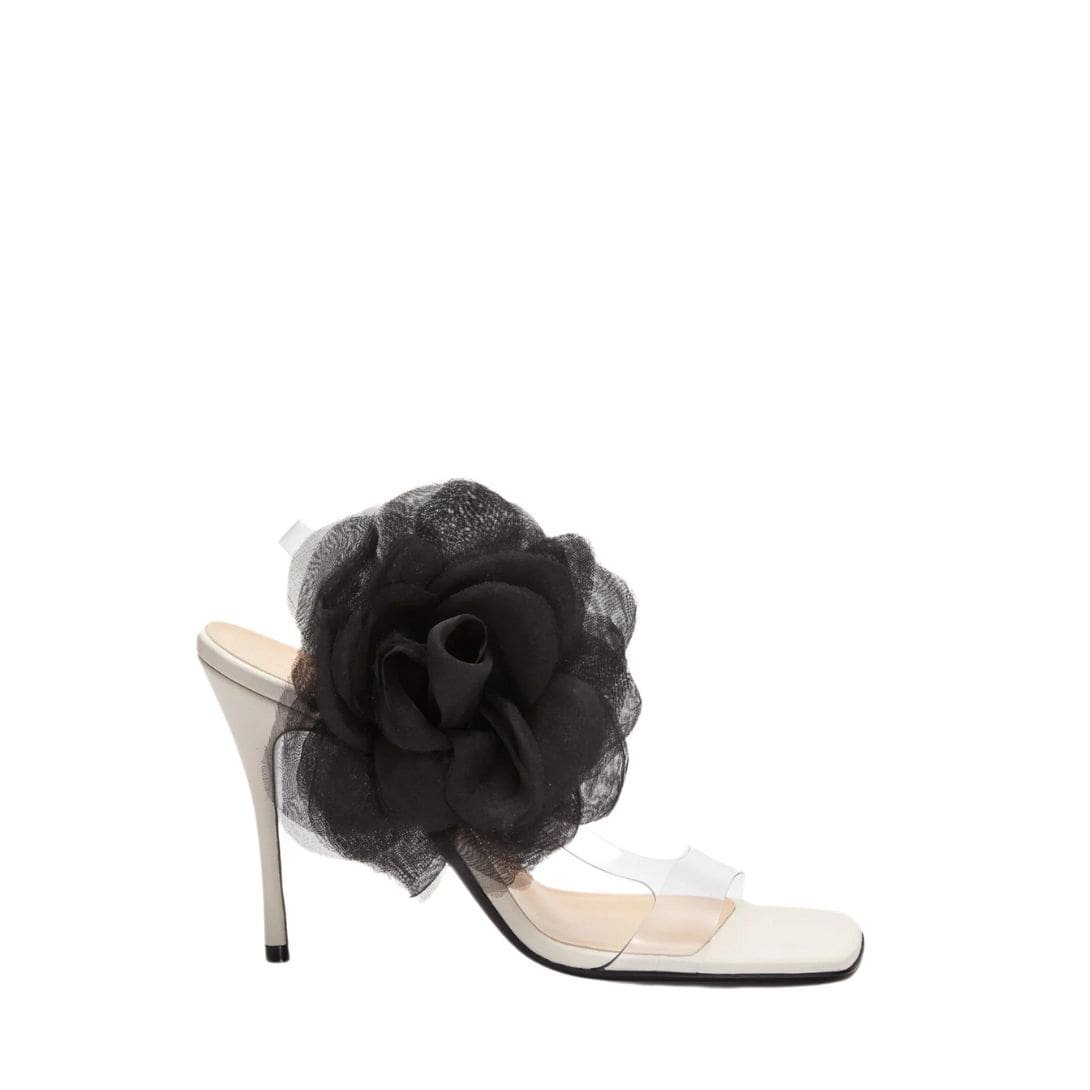 Step into the realm of understated elegance with our meticulously crafted MAGDA BUTRYM ORGANZA FLOWER PVC SANDALS IN CREAM BLACK, a perfect fusion of minimalist design and luxurious detailing. Each element of these sandals is carefully considered, ensuring both style and comfort are seamlessly integrated.