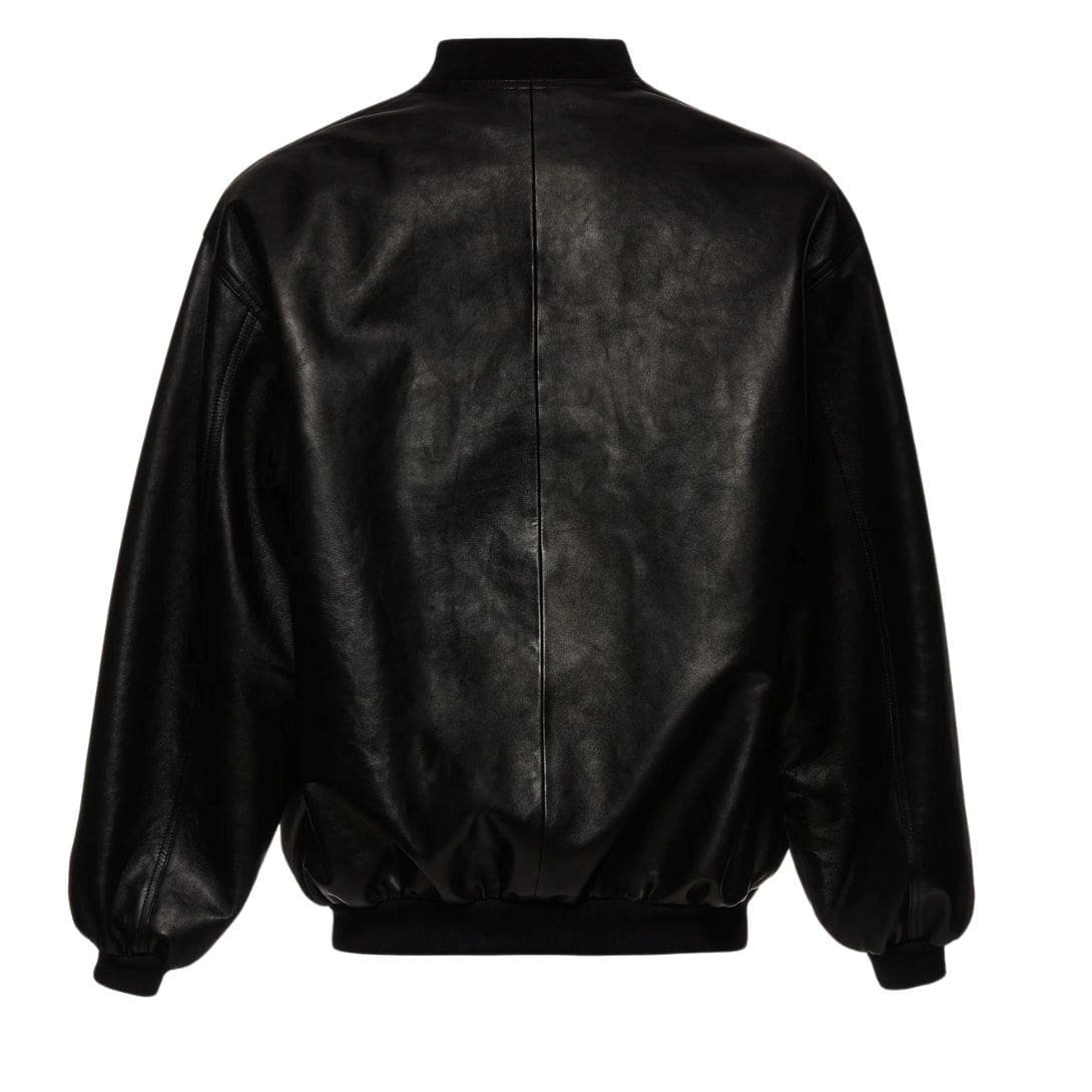 Introducing the epitome of urban cool: the Magda Butrym Oversized Leather Bomber Jacket In Black. This iconic piece effortlessly channels the rebellious spirit of the ’90s with its loose, relaxed fit and bold design elements.