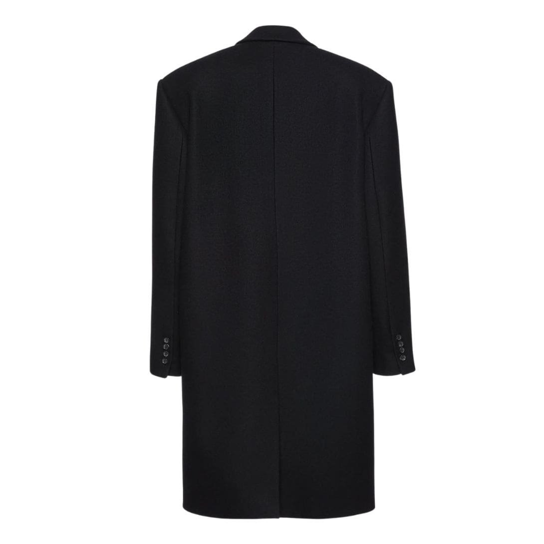 Available in classic black, this oversized single-breasted coat is a versatile wardrobe staple that effortlessly transitions from day to night. Whether worn over tailored separates for a polished office look or layered over casual attire for a weekend outing, it adds a touch of understated elegance to any outfit.