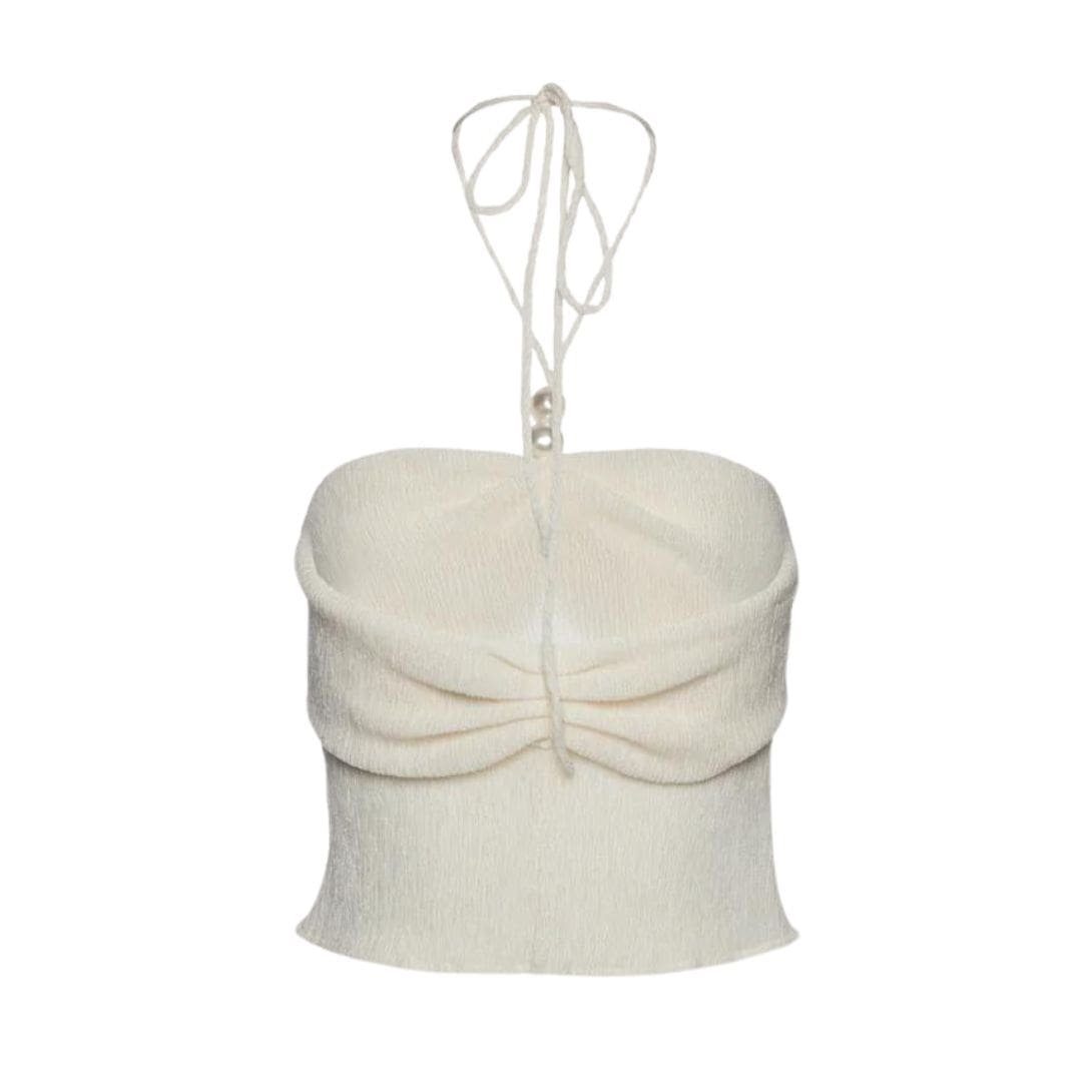 MAGDA BUTRYM PEARL HALTERNECK TUBE TOP IN CREAM
