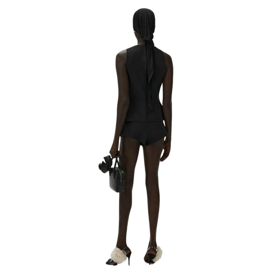 The modern MAGDA BUTRYM ROUND NECK WAIST COAT IN BLACK has undergone a fascinating evolution in recent fashion history, transcending its traditional roots to become a versatile and stylish garment for contemporary wardrobes. One exemplary manifestation of this evolution is the round neck waistcoat, a design that marries classic tailoring with contemporary flair.