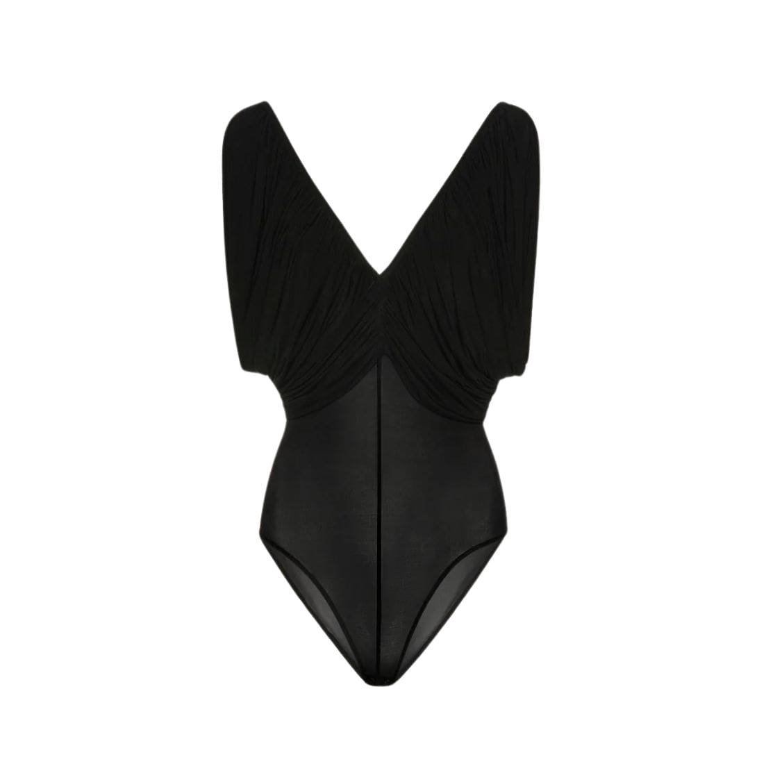 MAGDA BUTRYM RUCHED V NECK BODYSUIT IN BLACK