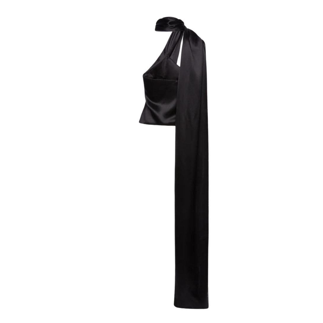 MAGDA BUTRYM SILK WRAP NECK TOP IN BLACK