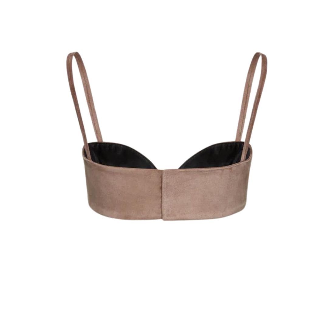 MAGDA BUTRYM SWEETHEART BRA TOP IN BROWN SUEDE