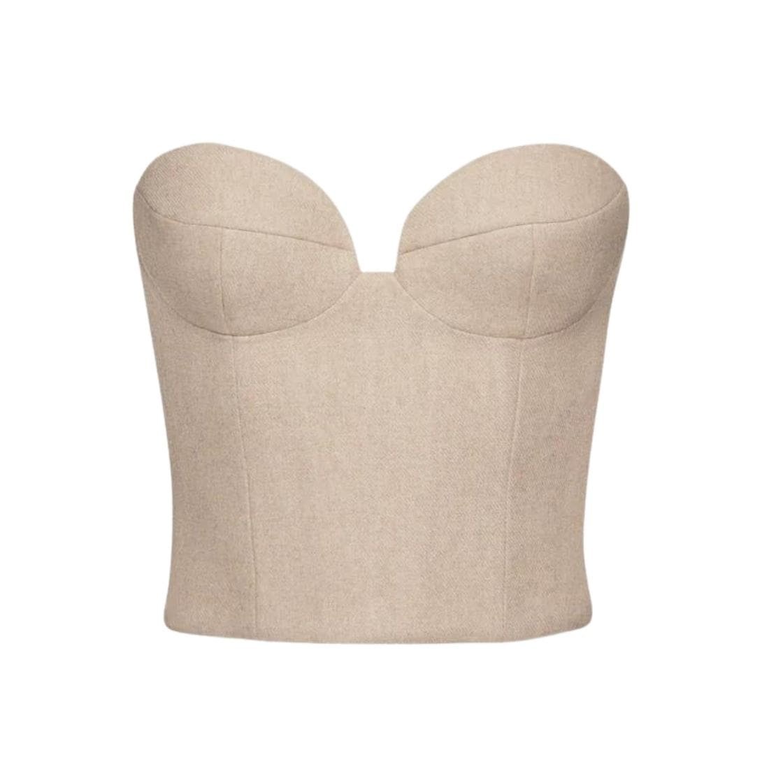 One of the standout features of this T-shirt is the internal shoulder pads, which add a subtle yet impactful touch of structure to the silhouette. These shoulder pads create a refined, structured look, elevating the T-shirt from a basic staple to a fashion-forward piece. The embossed Magda Butrym logo adds a touch of sophistication and brand recognition, subtly enhancing the T-shirt’s design without overwhelming its simplicity.