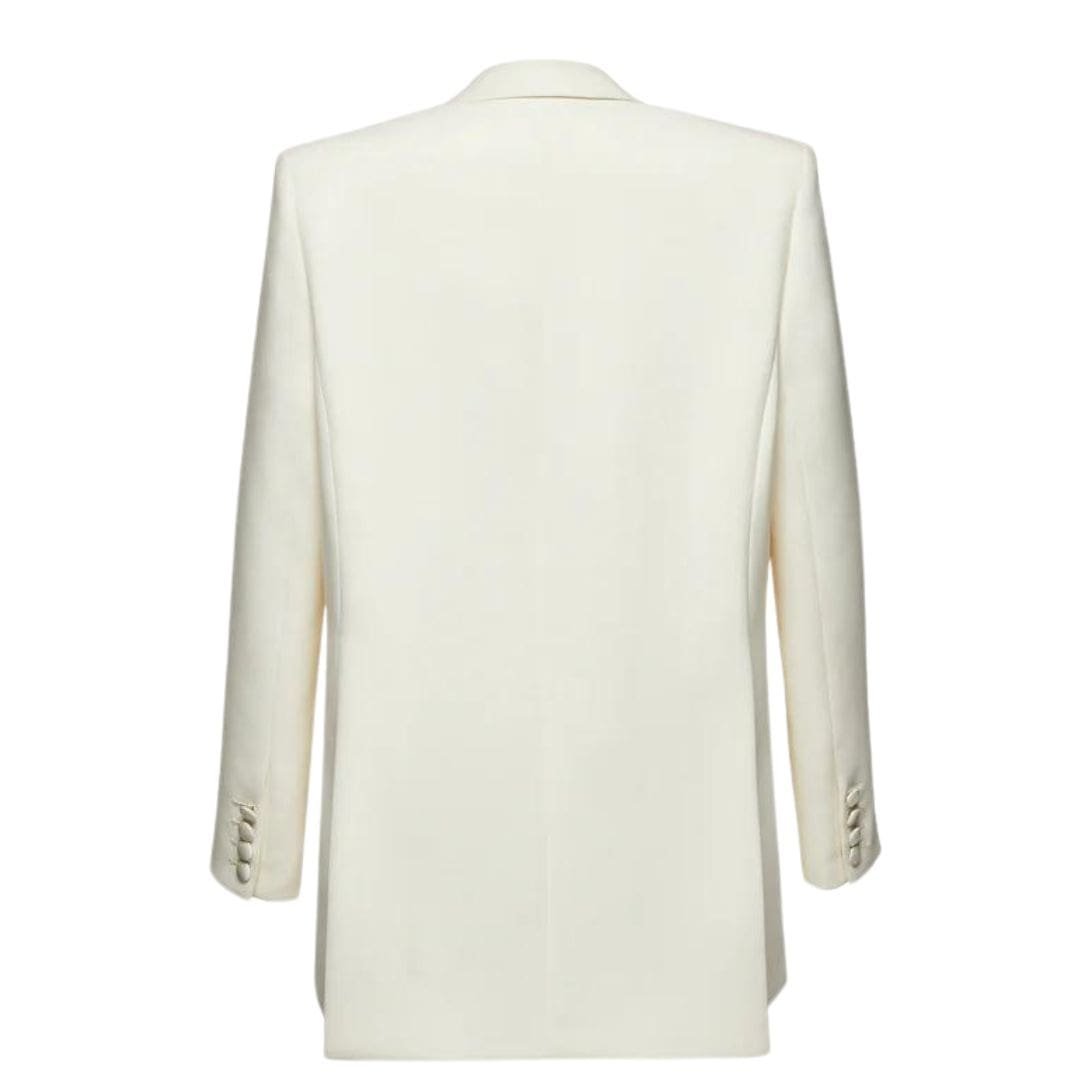 The Magda Butrym Tailored Blazer in cream. epitomizes timeless elegance with its classic straight silhouette and impeccable craftsmanship. Crafted from luxurious wool, this blazer exudes sophistication and refinement, making it a versatile staple for any wardrobe.