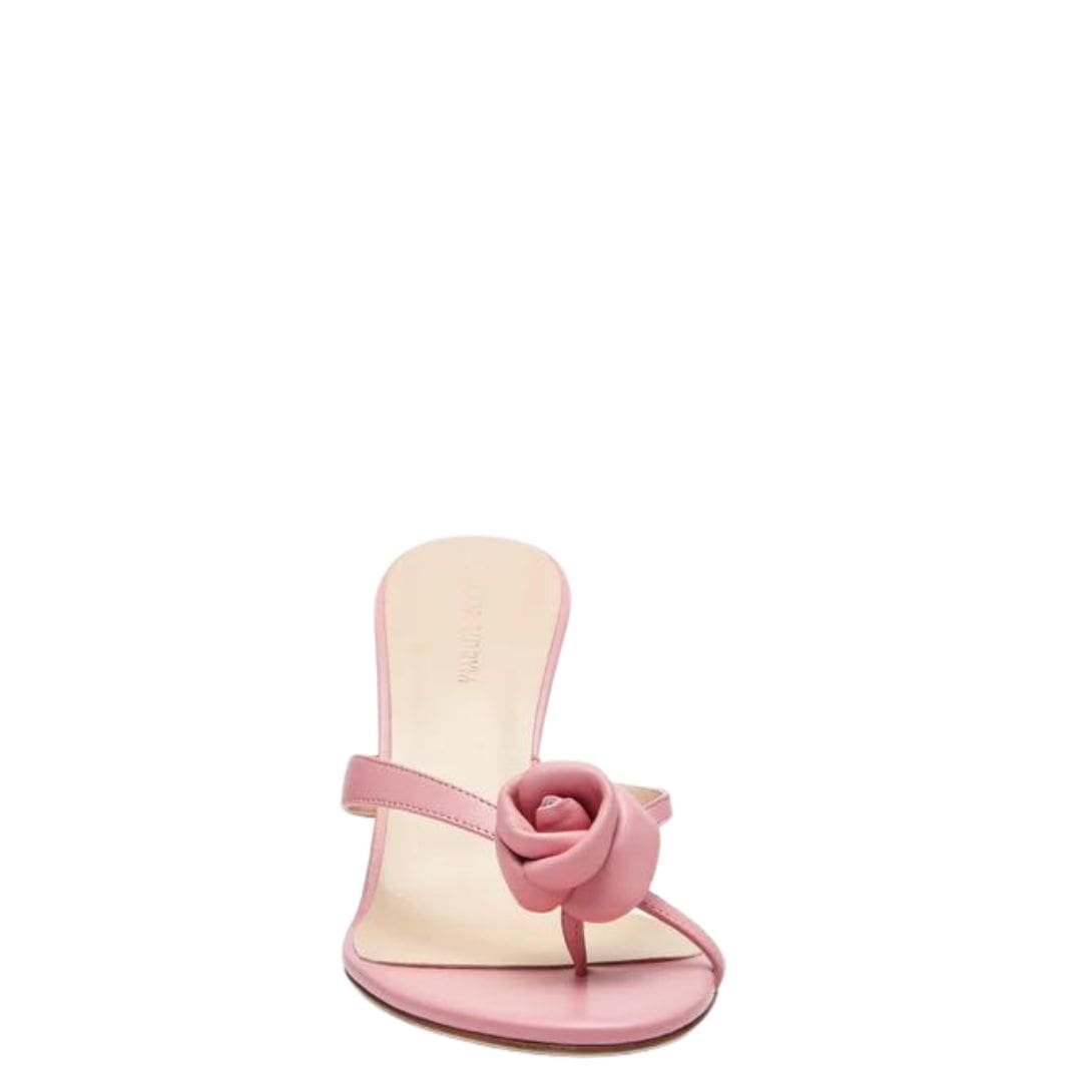 Adding a dreamy and romantic touch, the sandals are adorned with exquisite flower detail. This floral embellishment is carefully crafted to complement the smooth pink leather, creating a harmonious and visually appealing design. The flower adds a whimsical and feminine element to the sandals, making them stand out from ordinary footwear options.