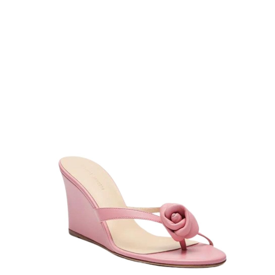 MAGDA BUTRYM WEDGE FLOWER SANDALS IN PINK LEATHER