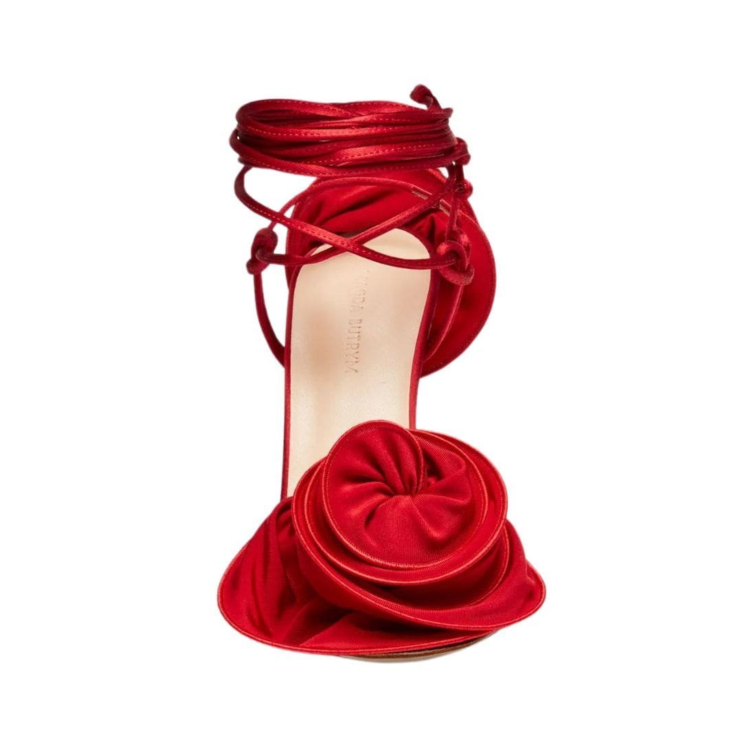Step into the epitome of sophistication and allure with MAGDA BUTRYM WRAP AROUND DOUBLE FLOWER SANDALS IN DARK RED, meticulously crafted to exude timeless elegance and charm. Standing gracefully atop a 105mm heel, these sandals boast a silhouette that embodies refined femininity, adorned with intricately designed 3D floral embellishments that add a touch of whimsy and romance to your ensemble.