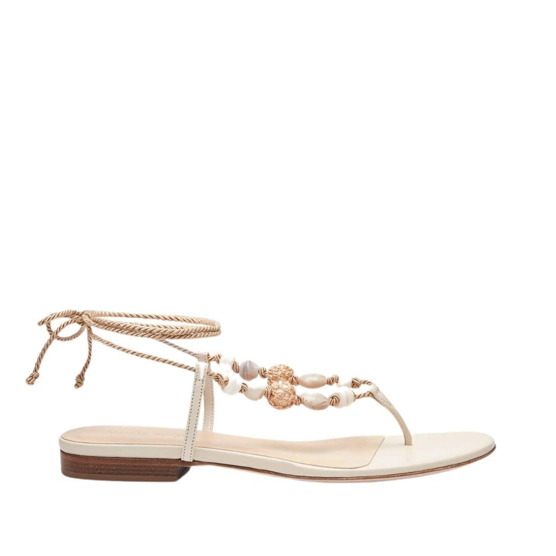 MAGDA BUTRYM WRAP AROUND FLAT CROCHET BEADS SANDALS IN CREAM