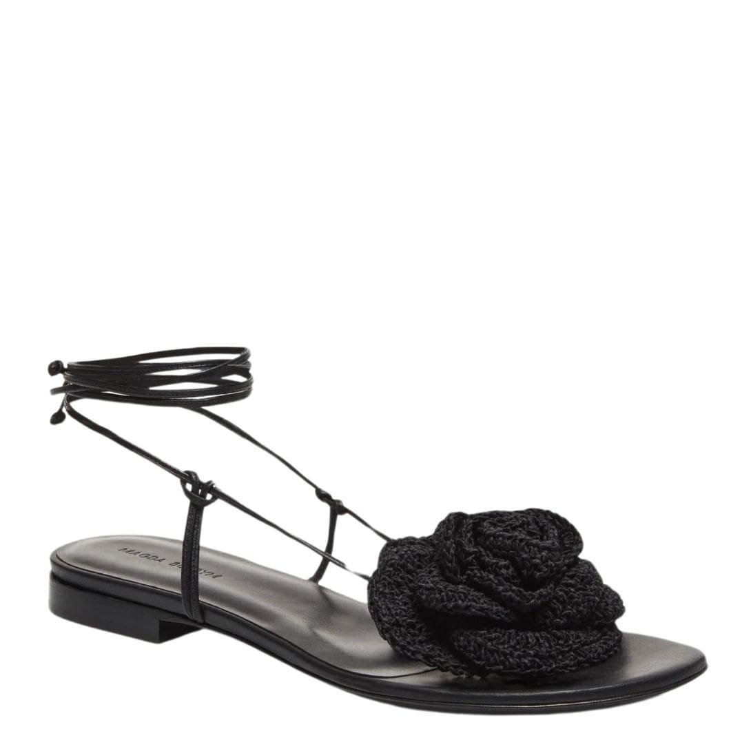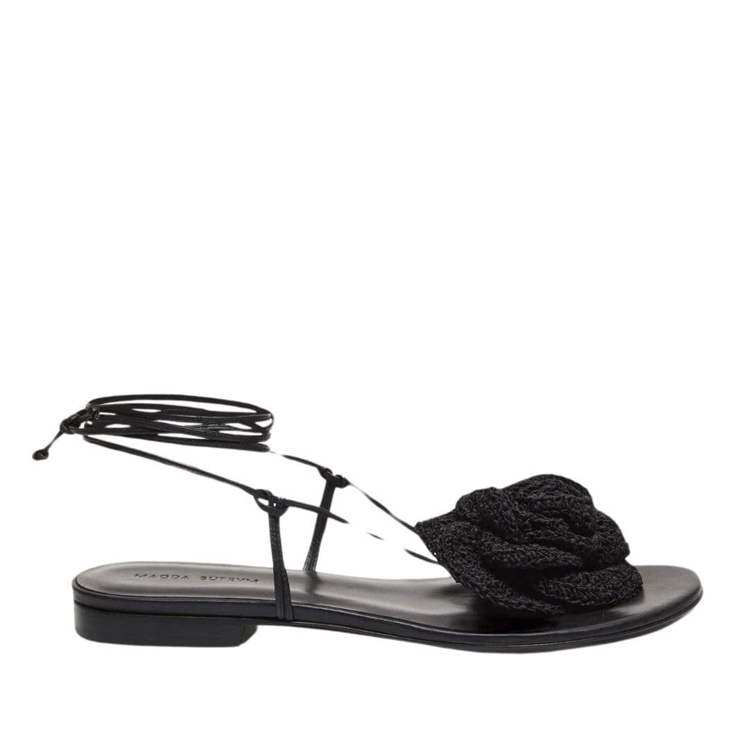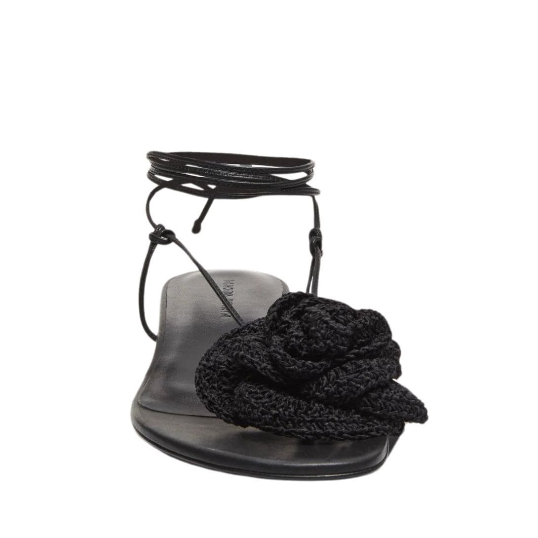 MAGDA BUTRYM WRAP AROUND FLAT FLOWER SANDALS IN BLACK CROCHET