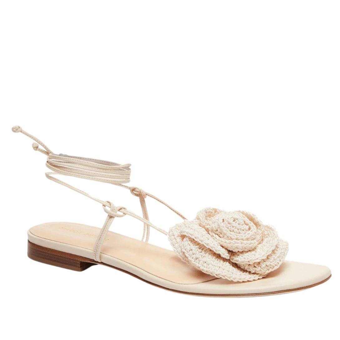 MAGDA BUTRYM WRAP AROUND FLAT FLOWER SANDALS IN CREAM CROCHET