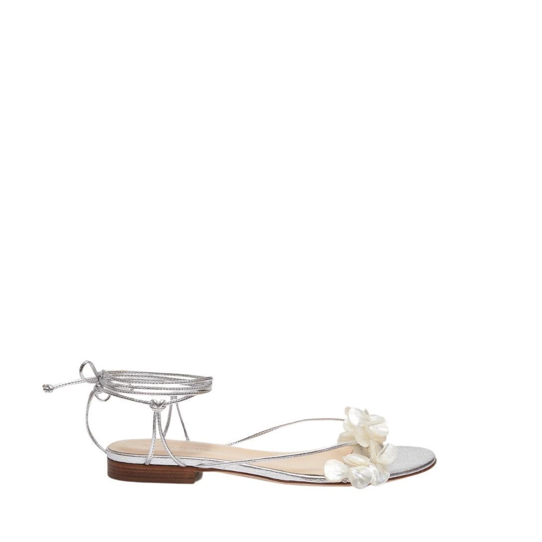 MAGDA BUTRYM WRAP AROUND PEARL SANDALS IN SILVER