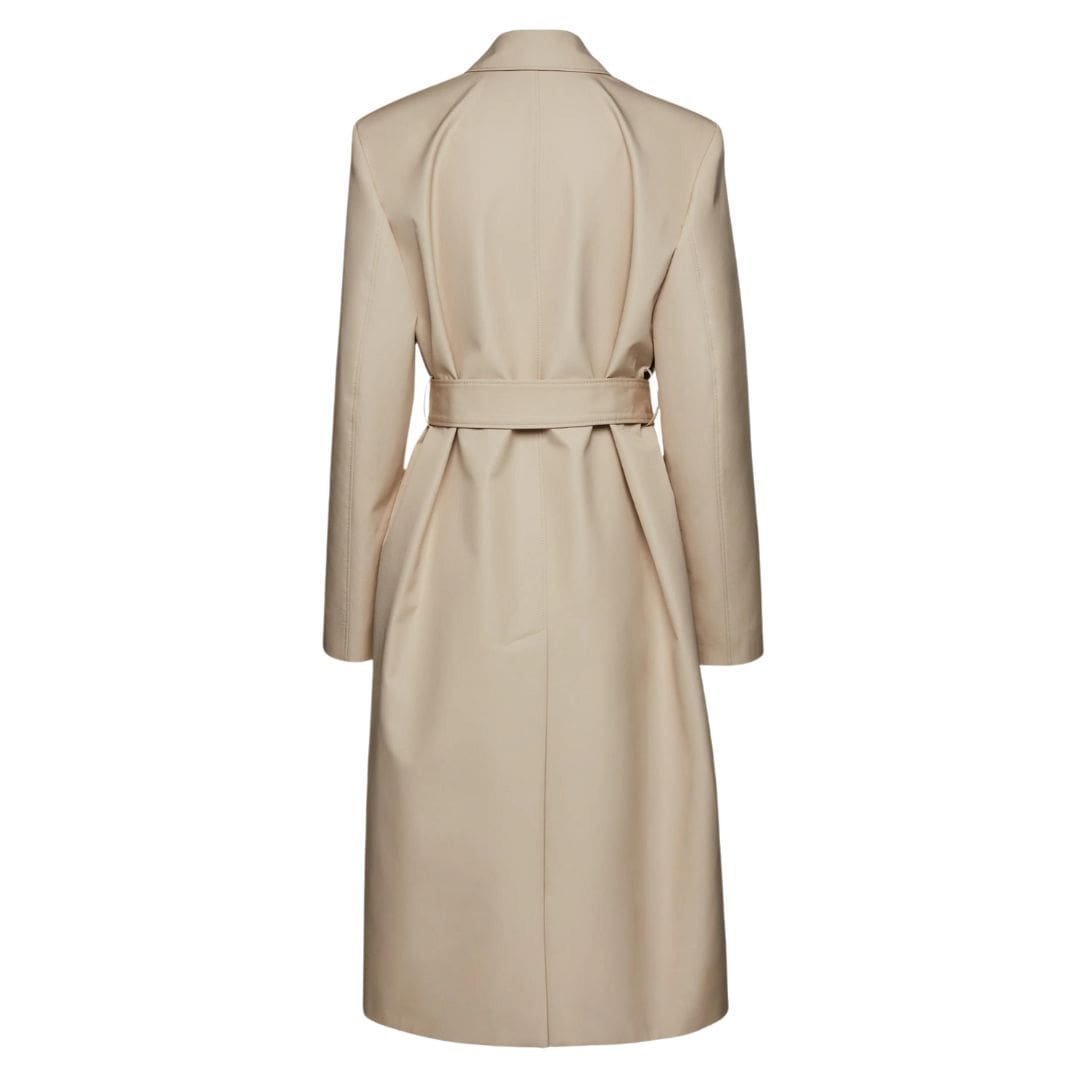True to Magda Butrym’s aesthetic, this coat is designed with meticulous attention to detail. From the precision tailoring to the thoughtfully placed seams, every element of the design reflects the brand’s dedication to quality and style.