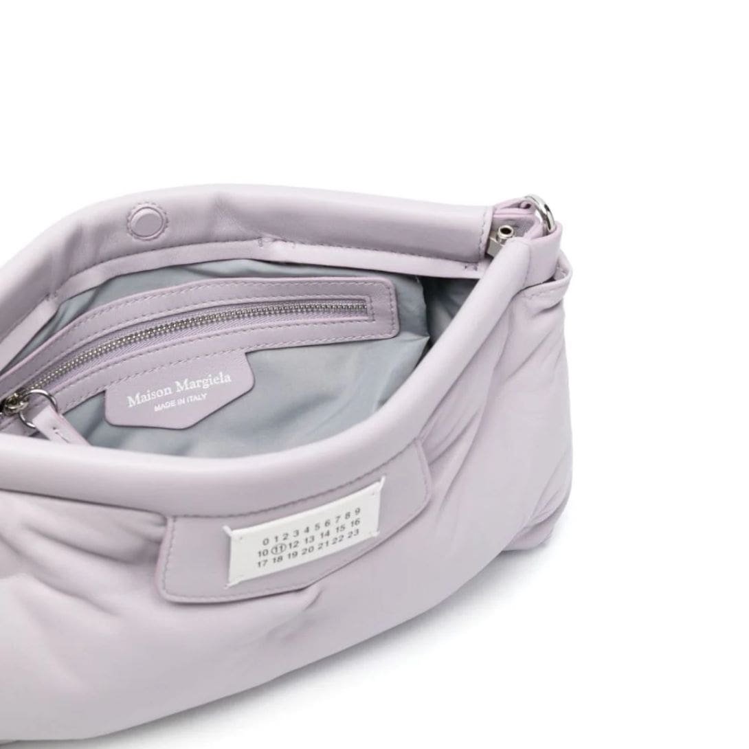 In a captivating lilac-purple hue, this bag is crafted from premium calf leather, ensuring durability and timeless elegance. Its padded design adds a touch of opulence, while Maison Margiela’s signature numbers motif subtly embellishes the exterior.