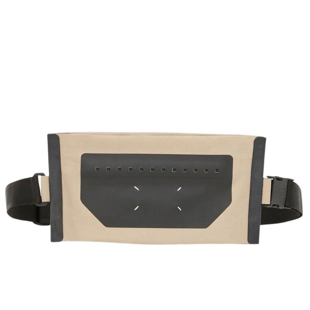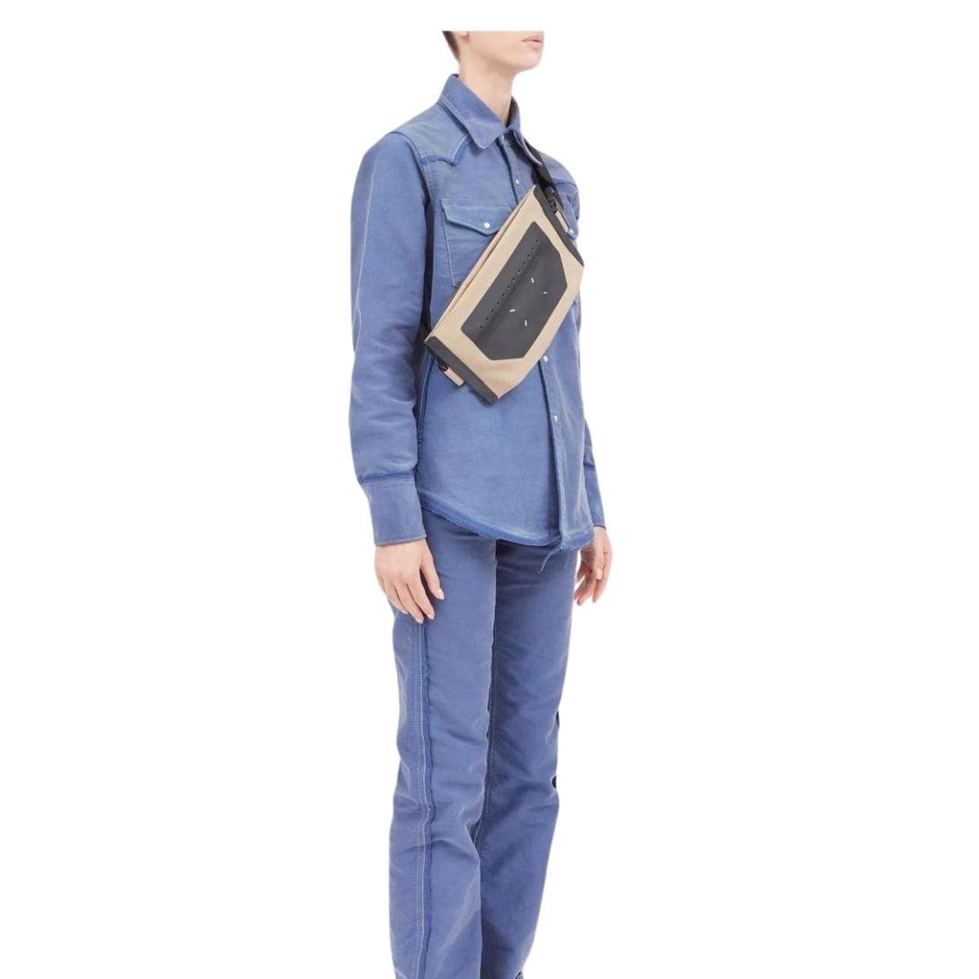 Maison Margiela Mackintosh Crossbody Bag, Crafted in Italy, the Maison Margiela Mackintosh crossbody bag combines taupe brown and black in a sophisticated two-tone design. It features the brand’s signature four-stitch logo and comes with an adjustable shoulder strap for customized wear. The bag includes a spacious main compartment and a convenient rear zip-fastening pocket for easy access to essentials.
