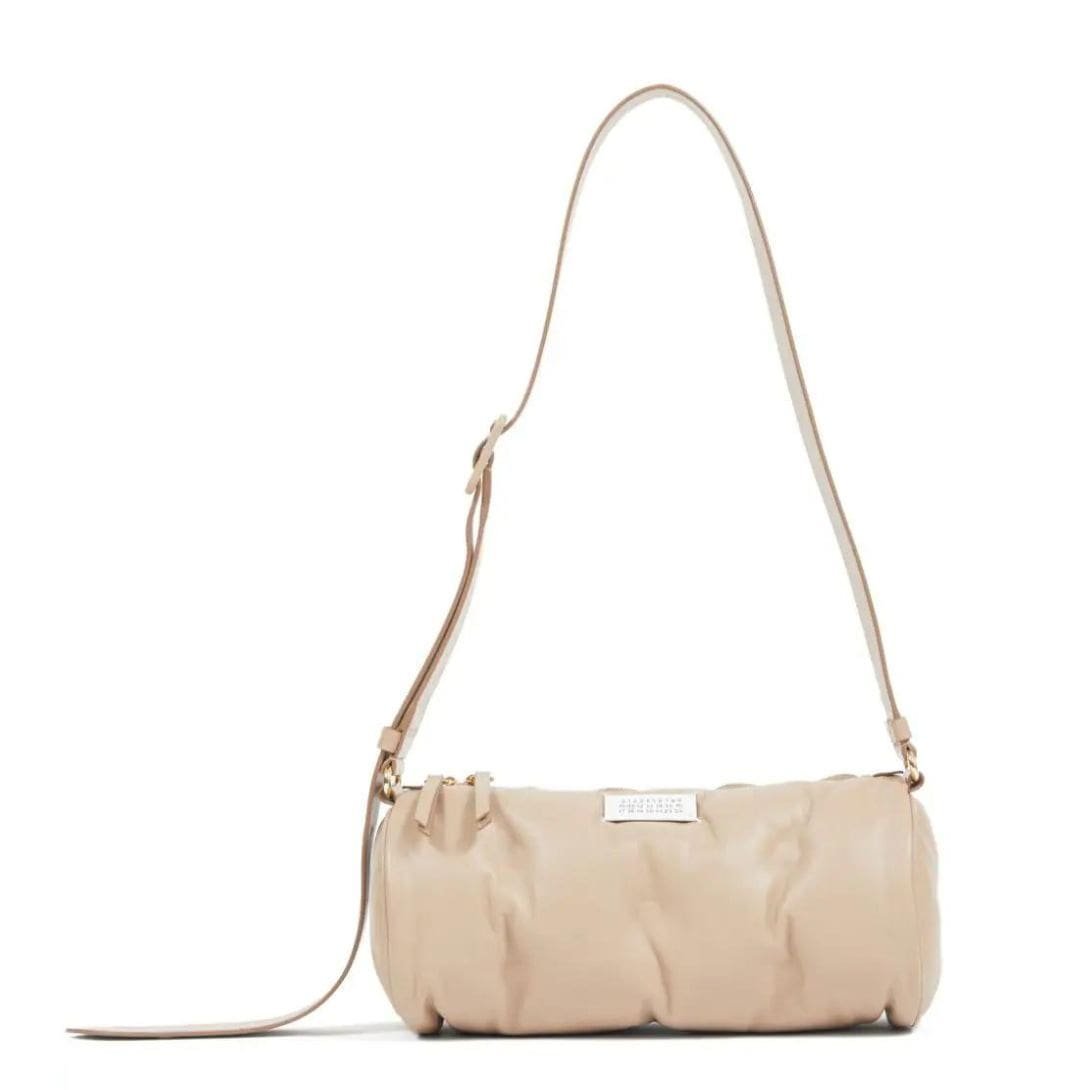 Maison Margiela introduces a petite rendition of its iconic Glam Slam design, embodying sophistication and modern luxury. Crafted from pristine white leather, this crossbody bag boasts a plush padded exterior, exuding opulence in every detail.