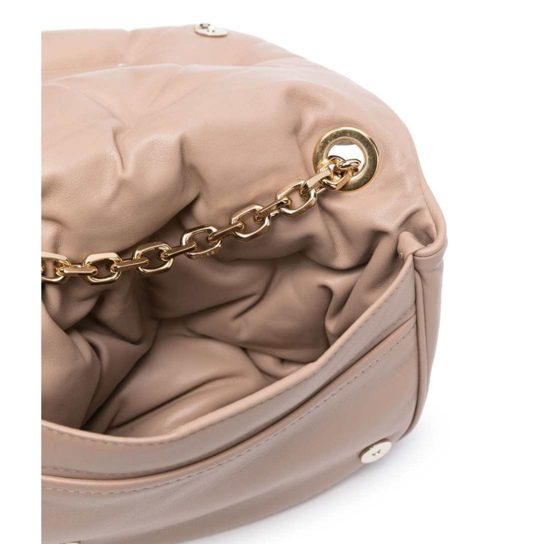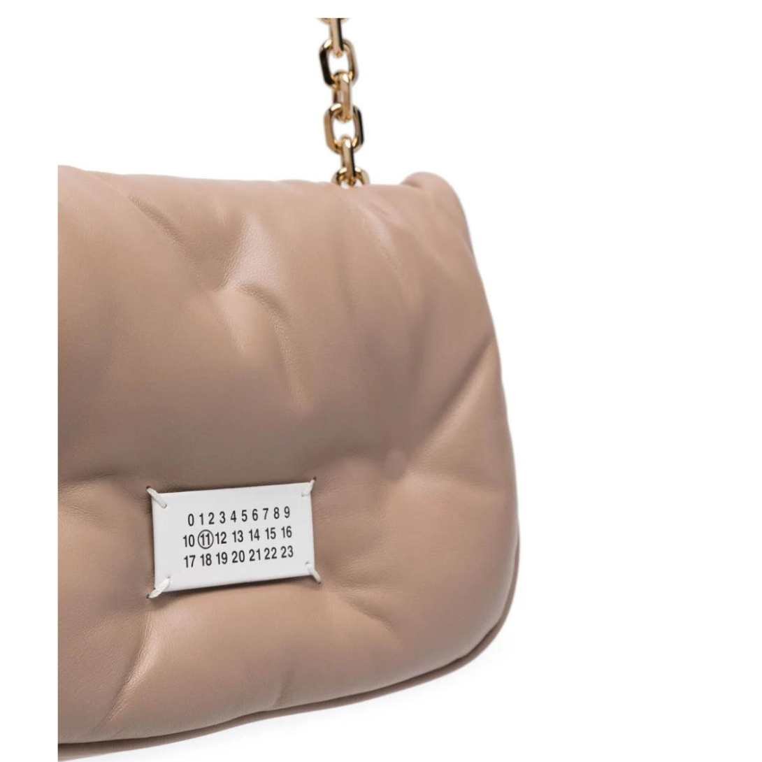 Crafted in Italy, this Maison Margiela small Glam Slam shoulder bag exudes elegance with its light brown hue and luxurious nappa leather construction. Its padded design and slouchy body offer a unique silhouette, while the signature numbers motif and four-stitch logo add a touch of brand recognition.