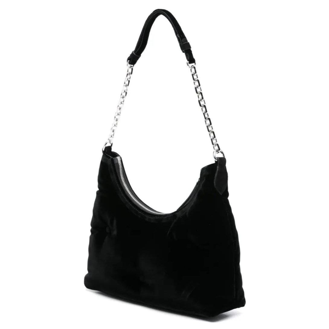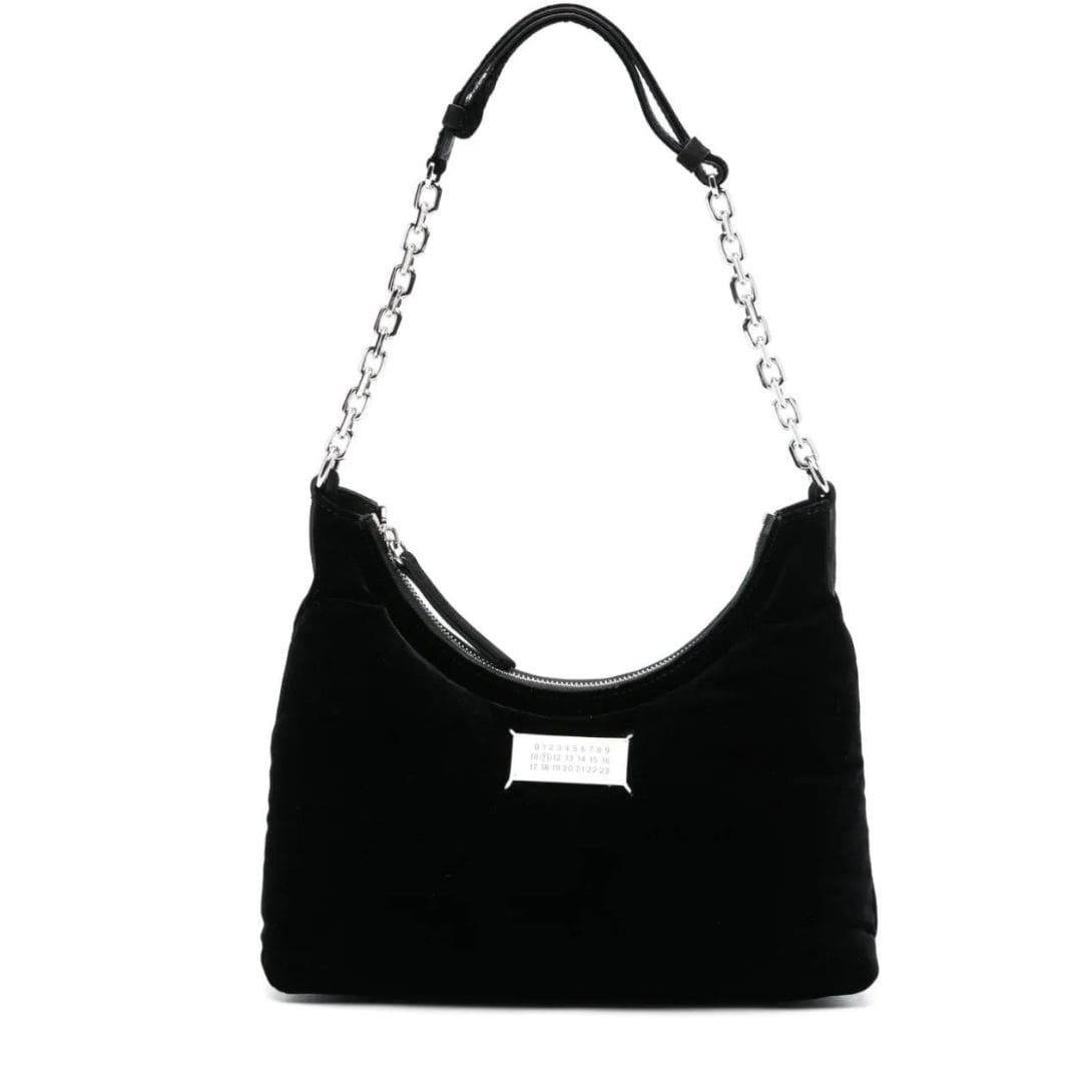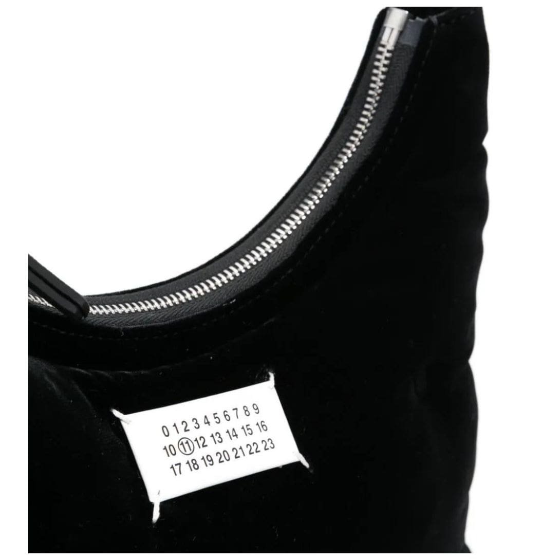 Maison Margiela small Glam Slam shoulder bag epitomizes the plush aesthetic of the Glam Slam line, distinguished by its tufted quilting and luxurious materials. Crafted in Italy, this shoulder bag features a sleek black velvet exterior, exuding opulence and sophistication.