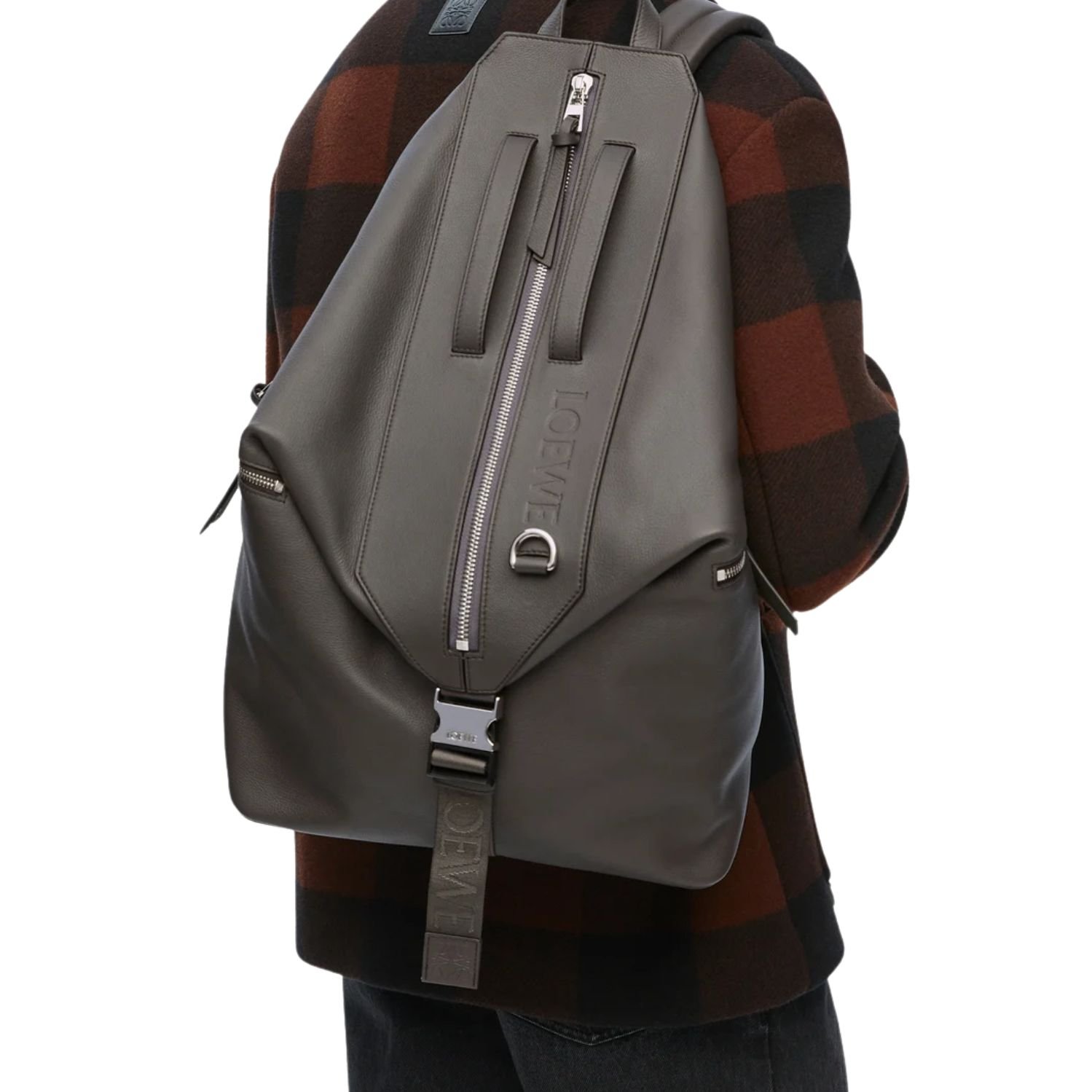 MAN LOEWE CONVERTIBLE LEATHER BAG DARK GREY