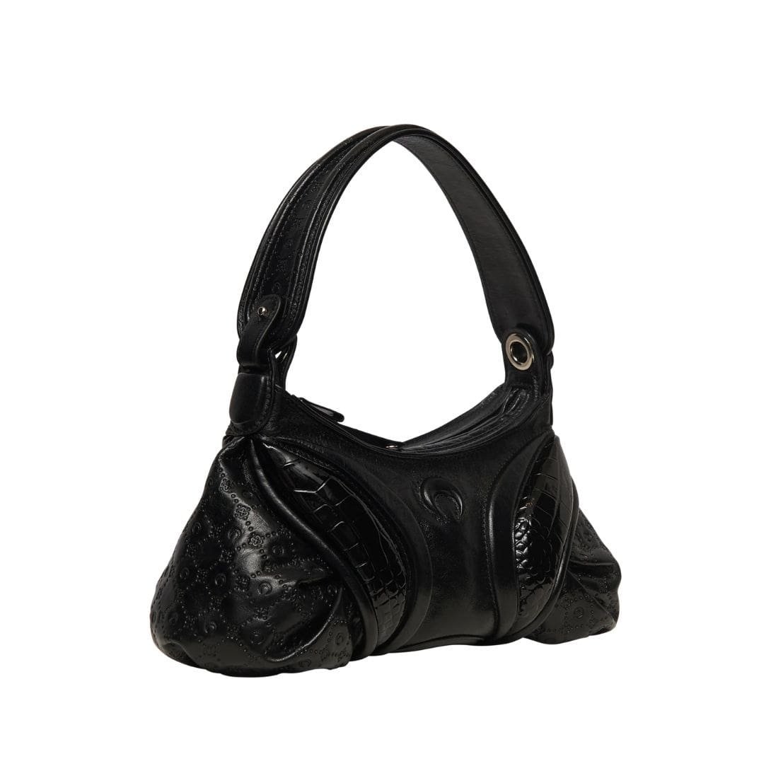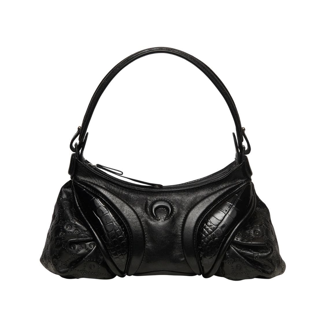 Nestled in the heart of Spain, where centuries-old traditions meet contemporary elegance, this exceptional Marine Serre Embossed Leather Futura Black bag emerges as a testament to exquisite craftsmanship and timeless design. Every aspect of this accessory reflects a dedication to quality and sophistication, ensuring it stands as a hallmark of luxury.