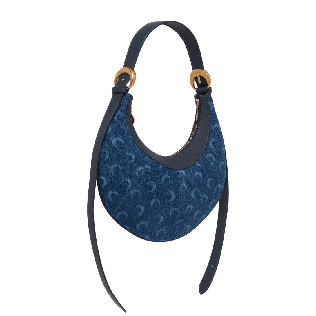 MARINE SERRE REGENERATED DEADSTOCK DENIM ECLIPS CROSSBODY BLUE