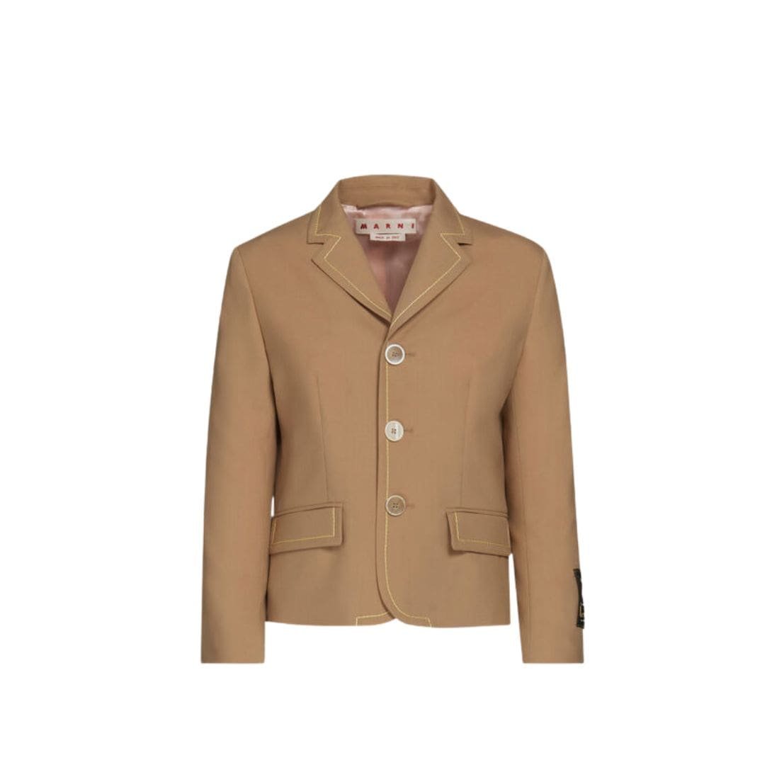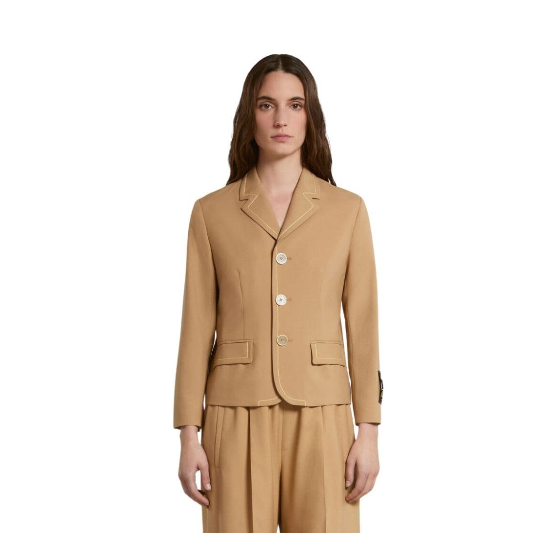 MARNI BEIGE WOOL JACKET WITH CONTRAST STITCHING