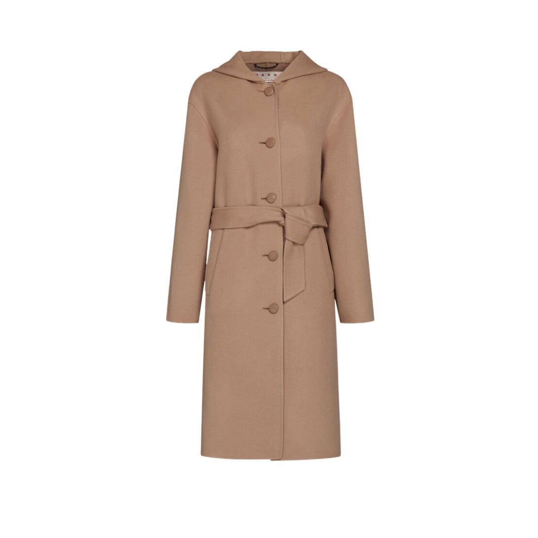 The Marni Beige Wool Jacket is designed with a notched lapel that lends a traditional feel, while the contrast stitching introduces a contemporary twist. The jacket is equipped with two flap pockets and a chest pocket, providing practical storage solutions without compromising its streamlined appearance. The interior is lined with a smooth, coordinating fabric that ensures comfort and ease of wear.