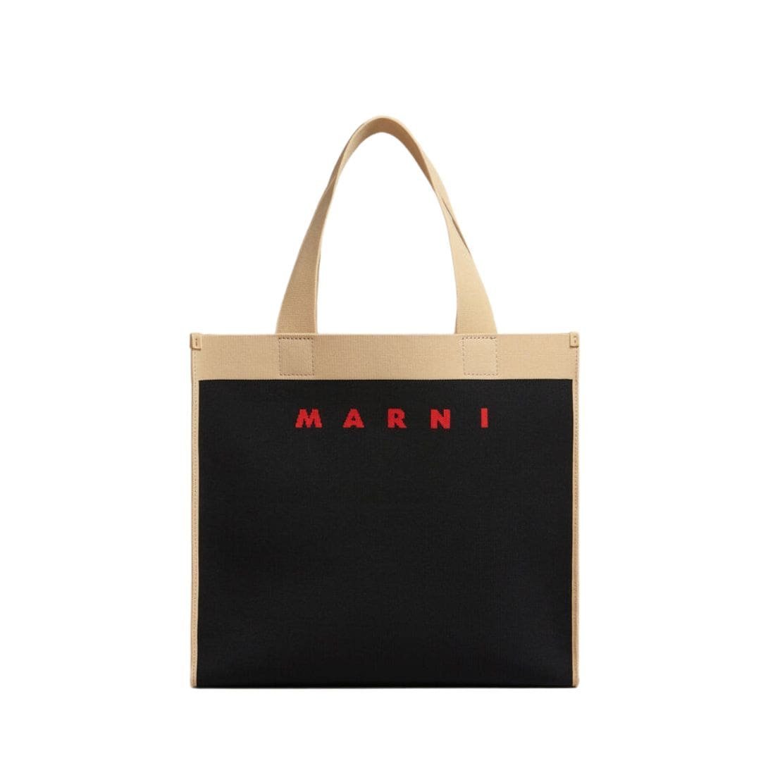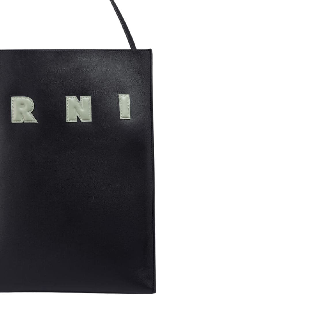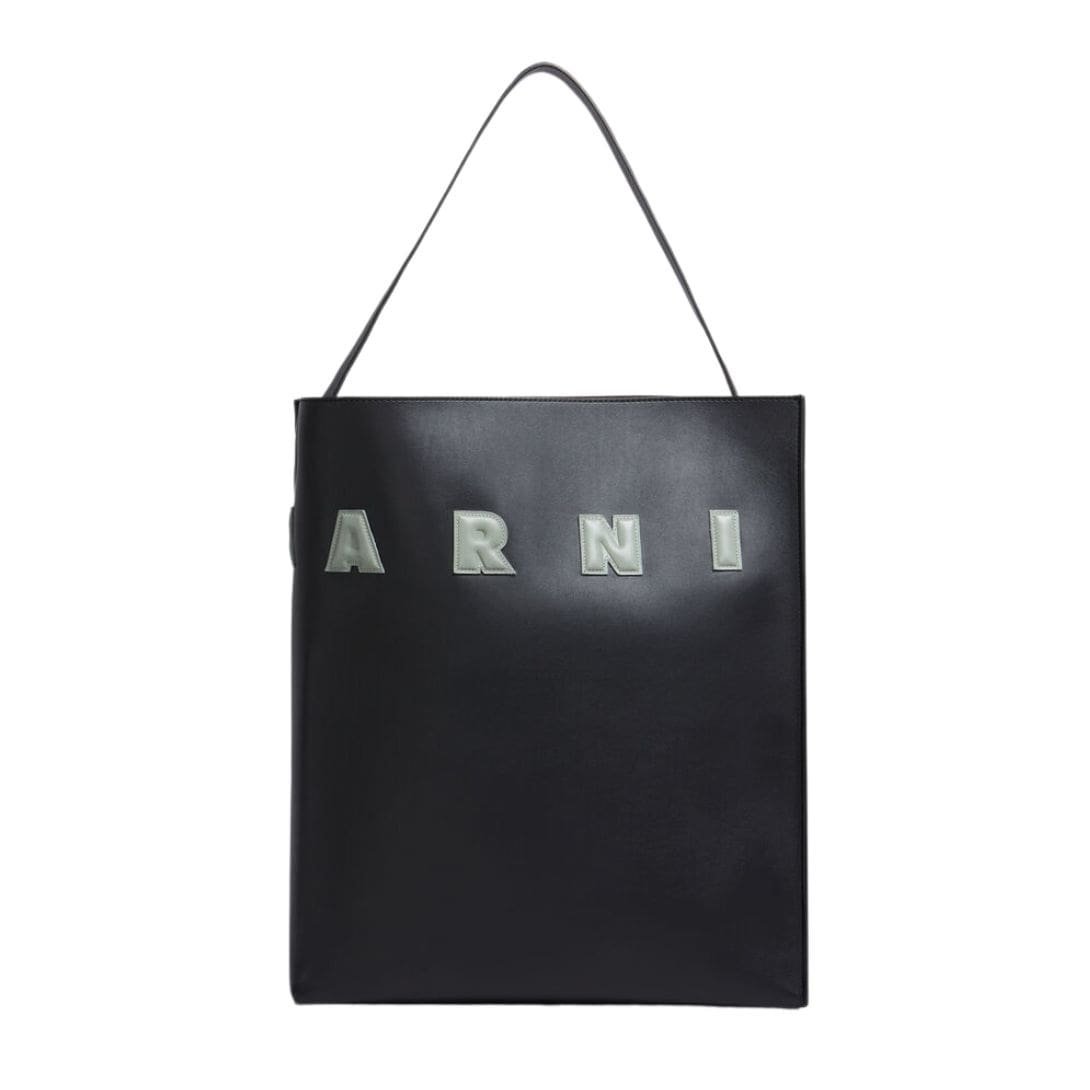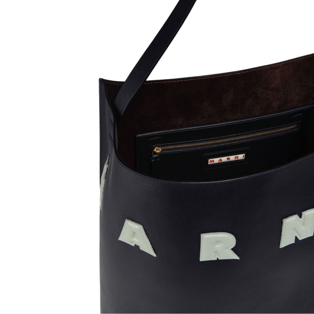 MARNI BLACK AND WHITE LEATHER MUSEO HOBO BAG WITH PATCHES