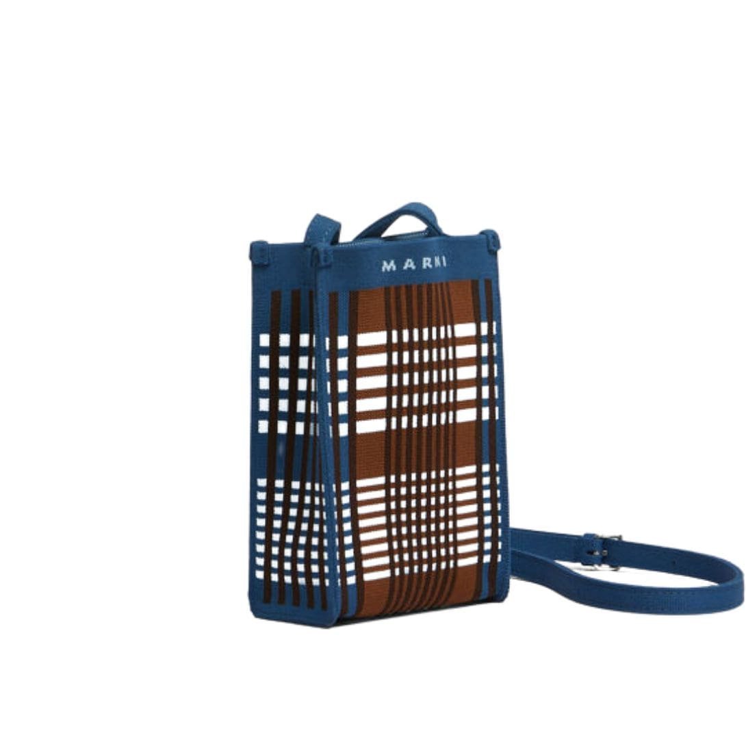 MARNI BLUE AND BROWN JACQUARD CHECK MINI SHOULDER BAG