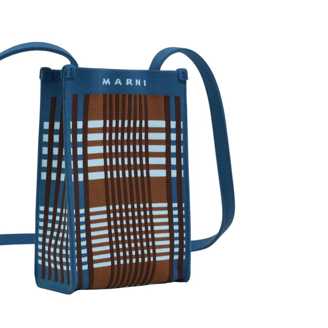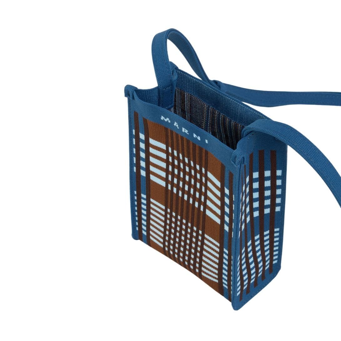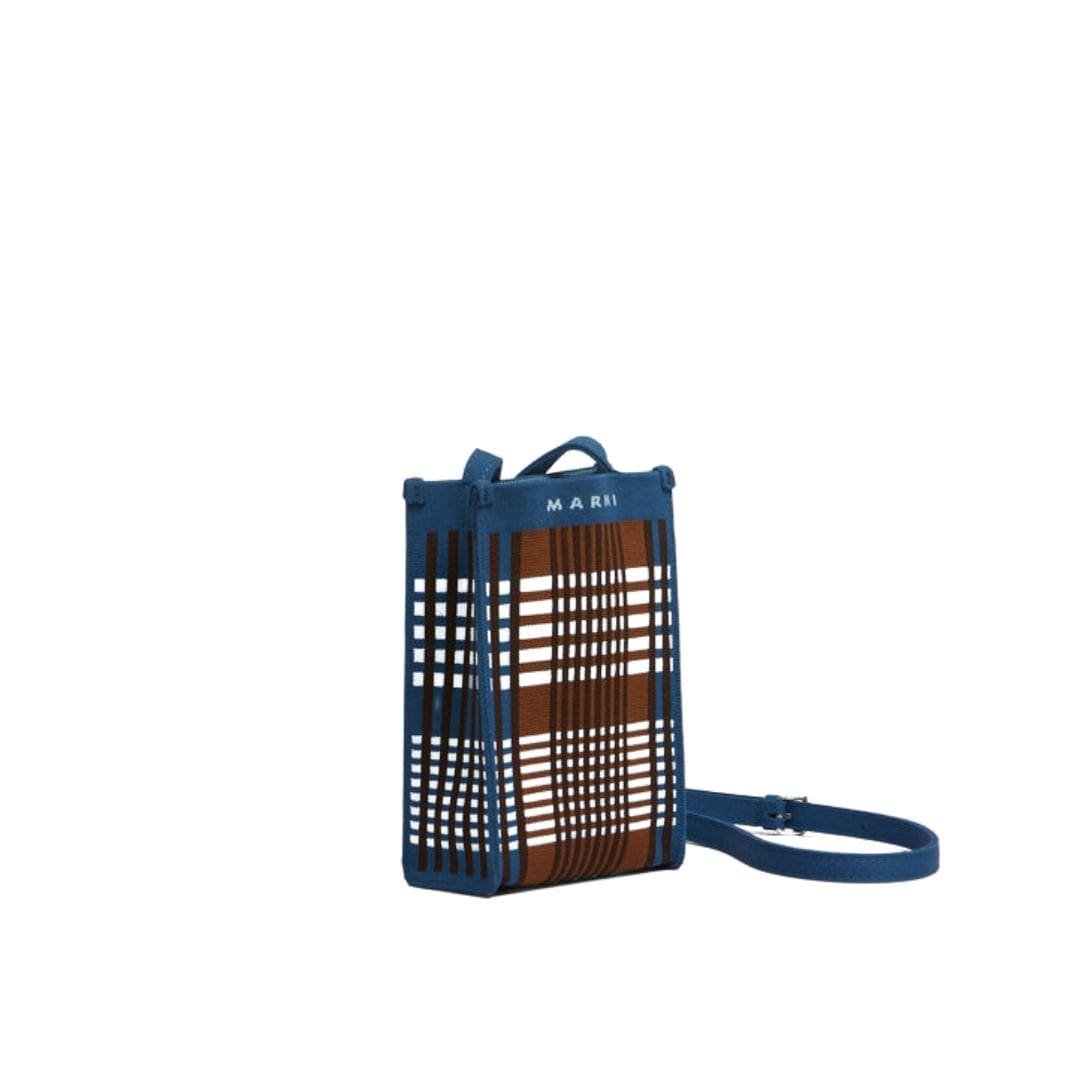 MARNI BLUE AND BROWN JACQUARD CHECK MINI SHOULDER BAG